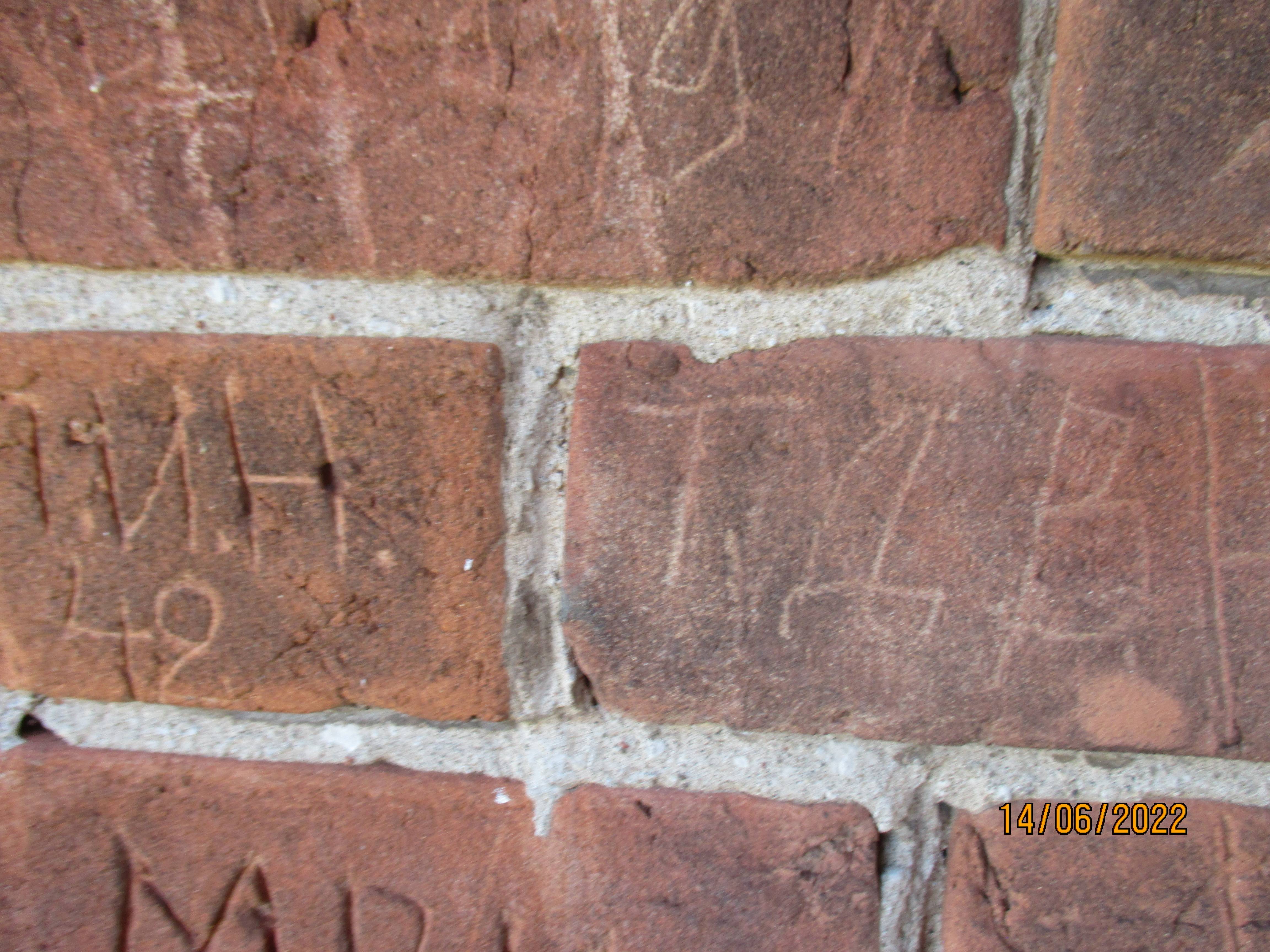 Местный священник о. Владимир показал на колокольне храма автографы, оставленные будущими летчиками на кирпичах. Плохо, но читаемы их ФИО и года – «42», «43». Попадаются выцарапанные в кирпичах полностью фамилии и такие как «1920» - с вероятным днем рождения.