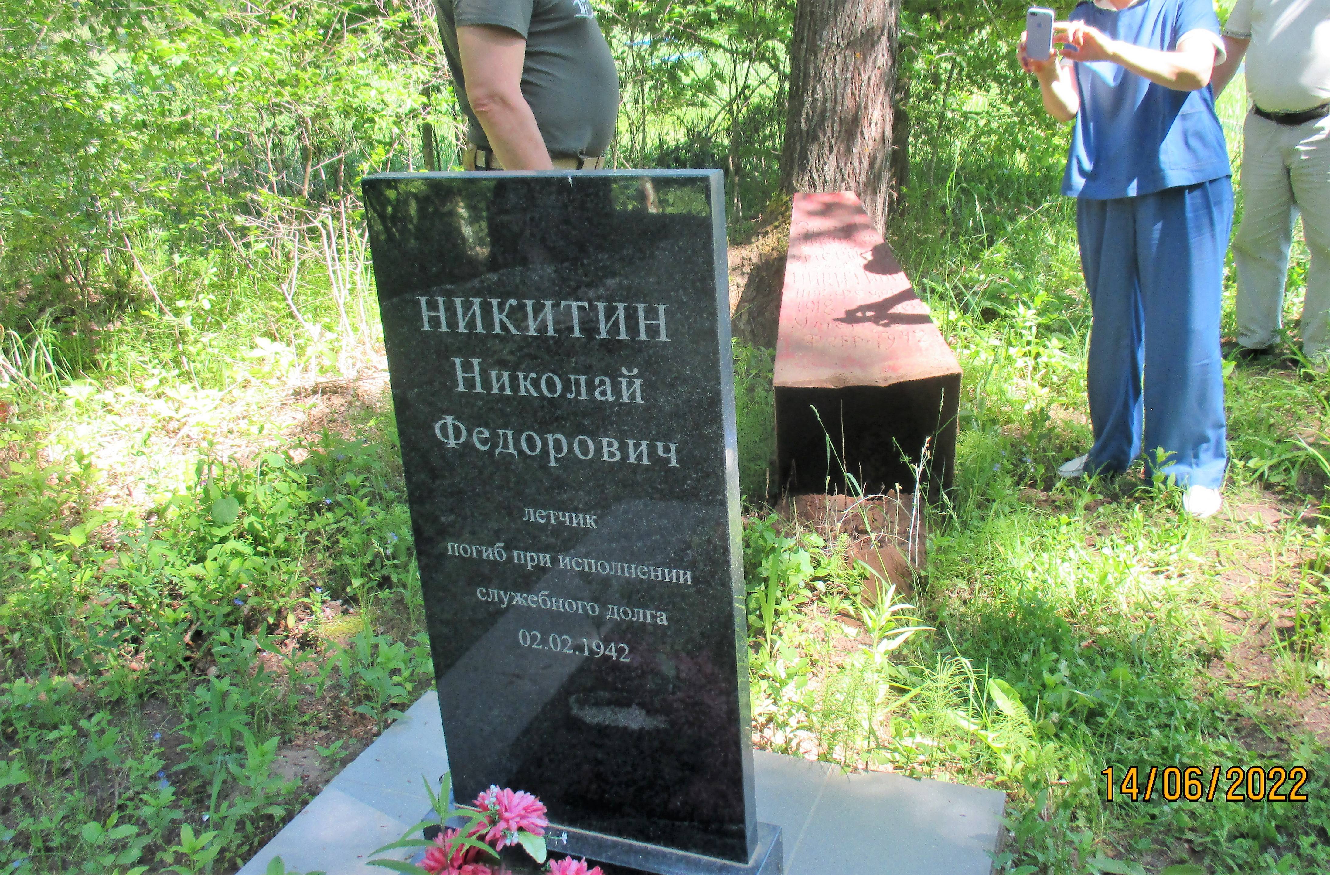 С местной жительницей В.А. Обуховой посетили бывший полевой аэродром и деревенский погост, на котором покоится тело летчика-инструктора, лейтенанта Никитина. С неослабевающим интересом был выслушан рассказ о его трагической судьбе летчика далеко от фронта. По воспоминаниям матери Валентины Александровны, офицера, совершившего прыжок с парашютом, уже у земли внезапно подхватили сильные потоки ветра. С большой скоростью они буквально несли его тело по окраине Ершовки, то поднимая, то бросая вниз, при этом ударяя тело о строения.