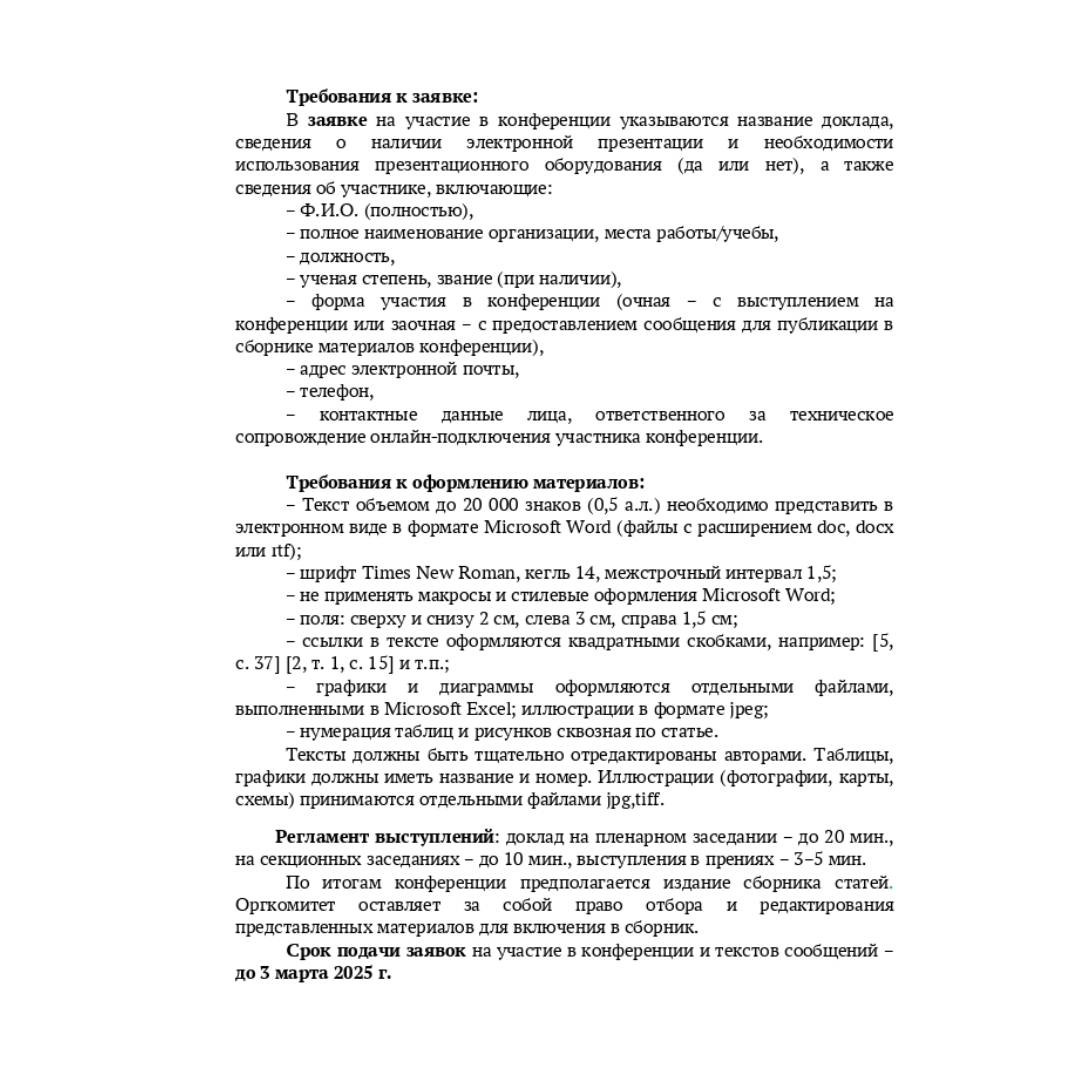 Срок подачи заявок на участие в Конференции и текстов сообщений – до 3 марта 2025 года.