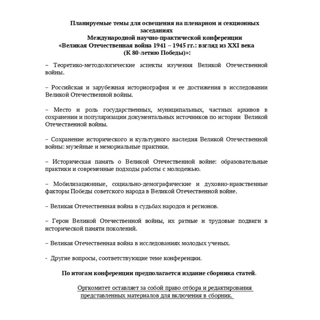 К обсуждению на конференции предлагаются актуальные вопросы истории Великой Отечественной войны 1941-1945 гг., вклада народов России и Удмуртии в достижении Победы над немецко-фашистскими захватчиками.