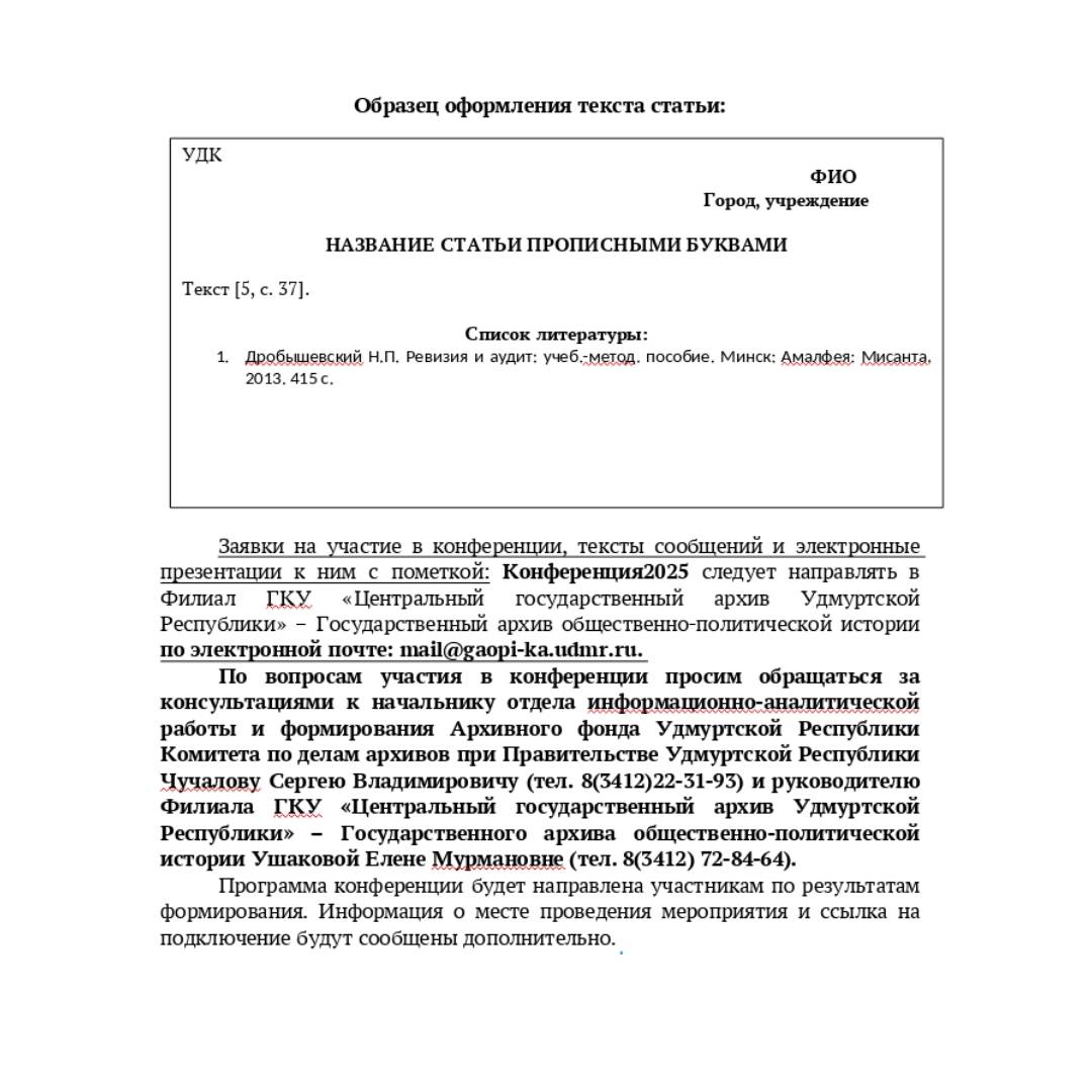 ГКУ «Центральный государственный архив Удмуртской Республики» - Государственный архив общественно-политической истории по электронной почте: mail@gaopi-ka.udmr.ru