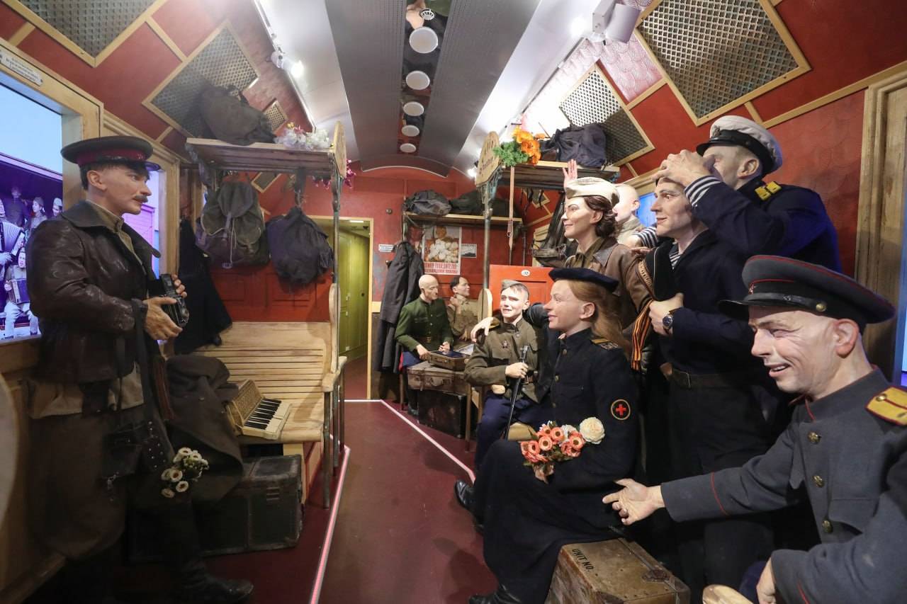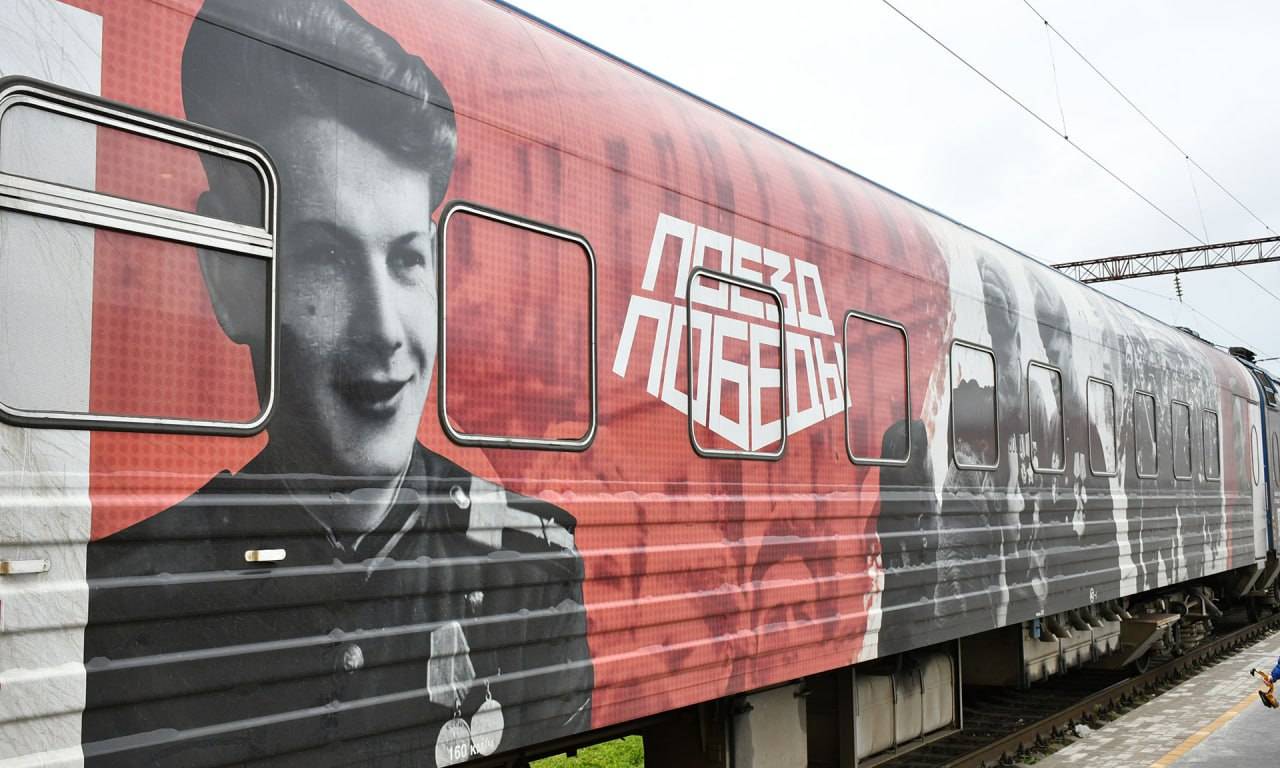 «Поезд Победы» — это уникальный передвижной музей, сплав традиции и новаторства, сочетание современных технологий, исторической правды и неподдельных эмоций. В состав стилизованного Поезда Победы входит паровоз «Л-693», вагон-теплушка и 6 платформ с макетами военной техники