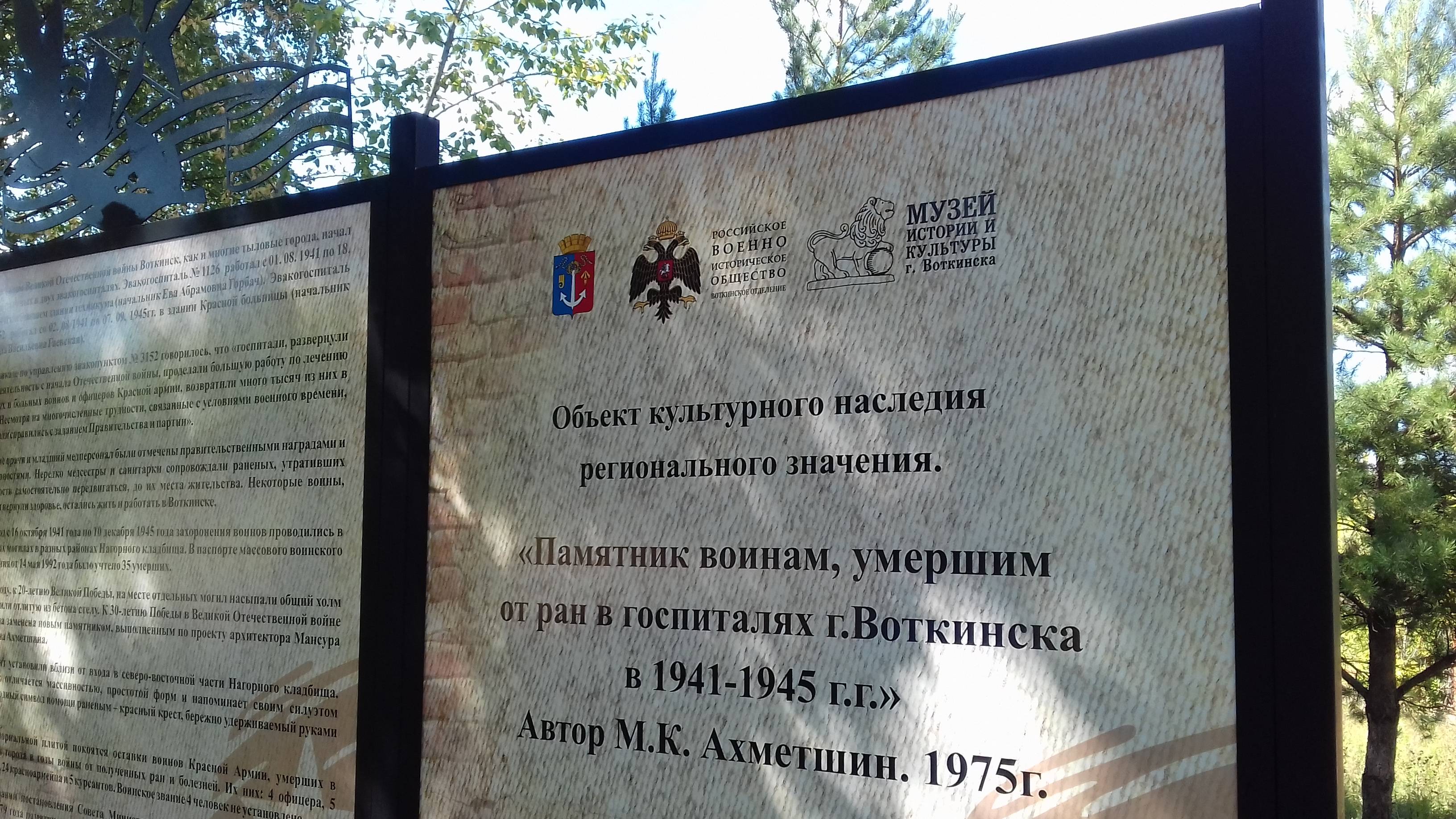 При поддержке Воткинского отделения РВИО проведена реконструкция "Памятника воинам, умершим от ран в госпиталях г. Воткинска 1941-1945гг.»