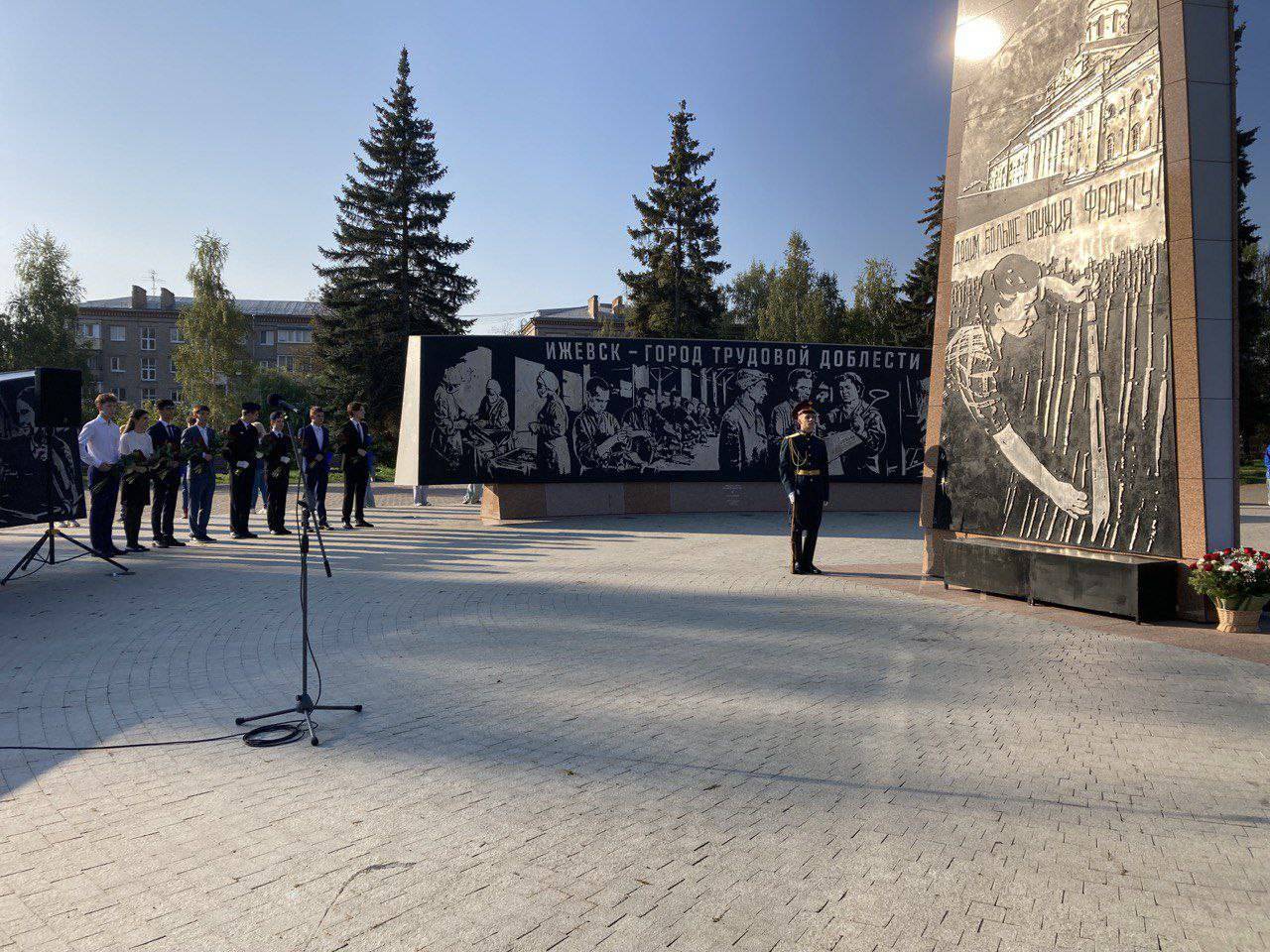 В ходе церемонии участники возложили цветы к стеле «Ижевск - город трудовой доблести» и почтили память героев трудового фронта минутой молчания.