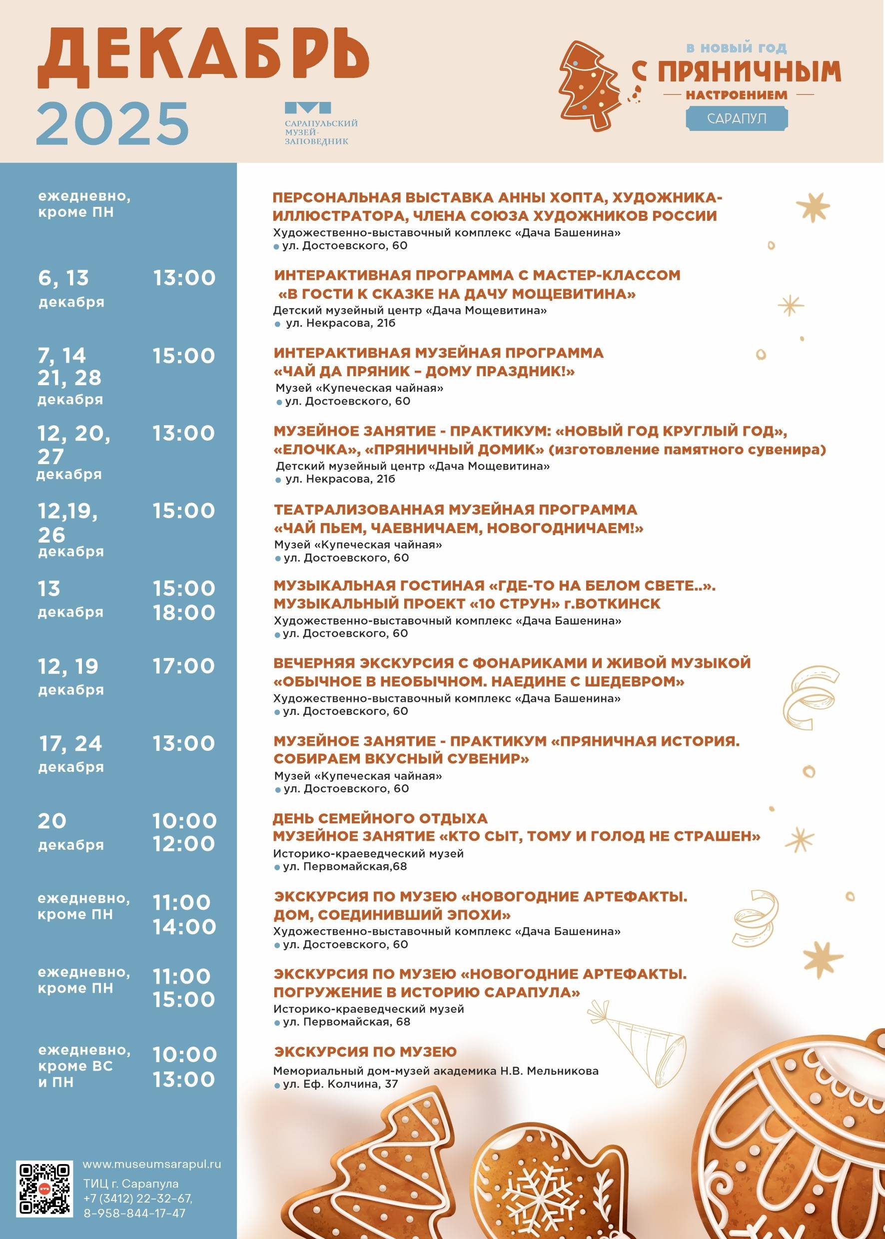 Жителей и гостей города ждут интерактивные и театрализованные программы, мастер-классы, увлекательные экскурсии и вечерние прогулки с фонариками под живую музыку. Всё это уже доступно в декабре!