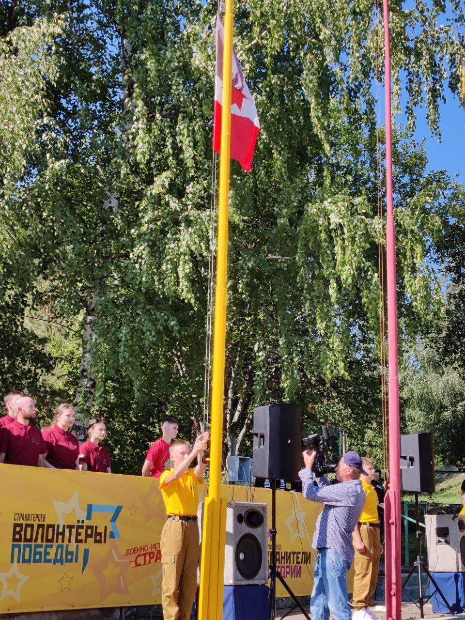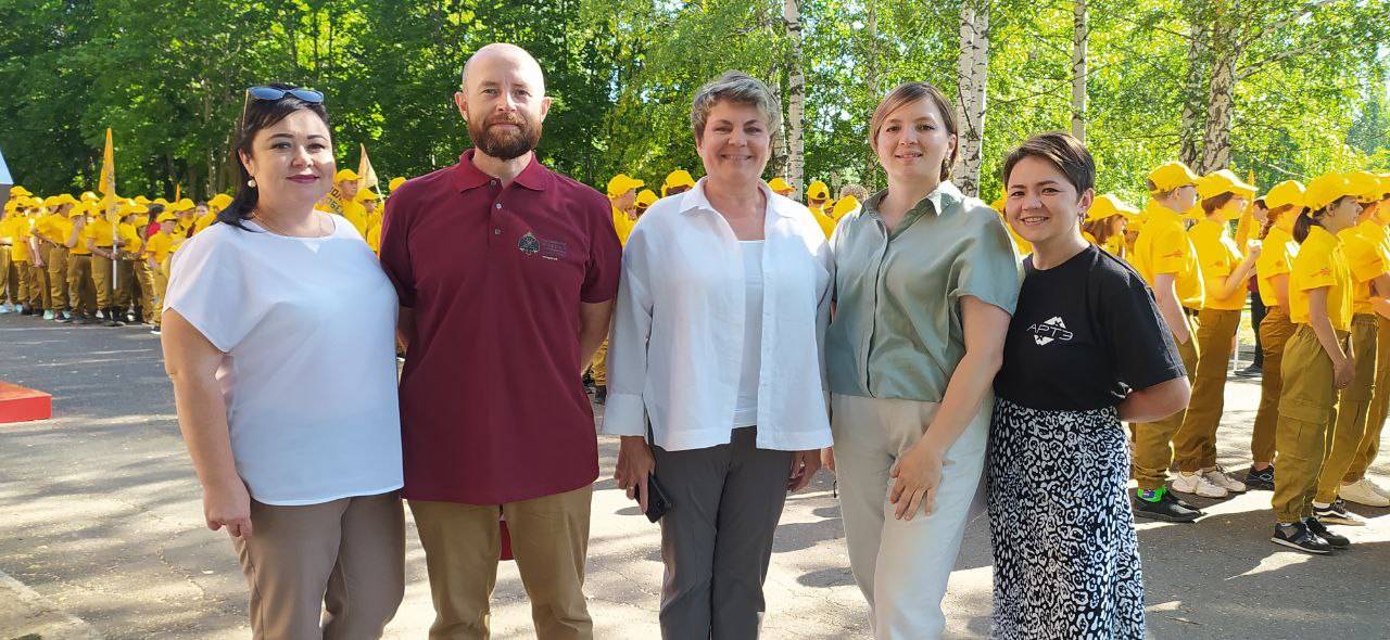 На торжественной линейке были сданы рапорта отрядов о готовности к открытию смены и подняты флаги России и Удмуртии. Ребятам были представлены основные тематические направления «Страны Героев», руководство и инструкторский состав военно-исторического лагеря, среди которых актив регионального отделения РВИО.