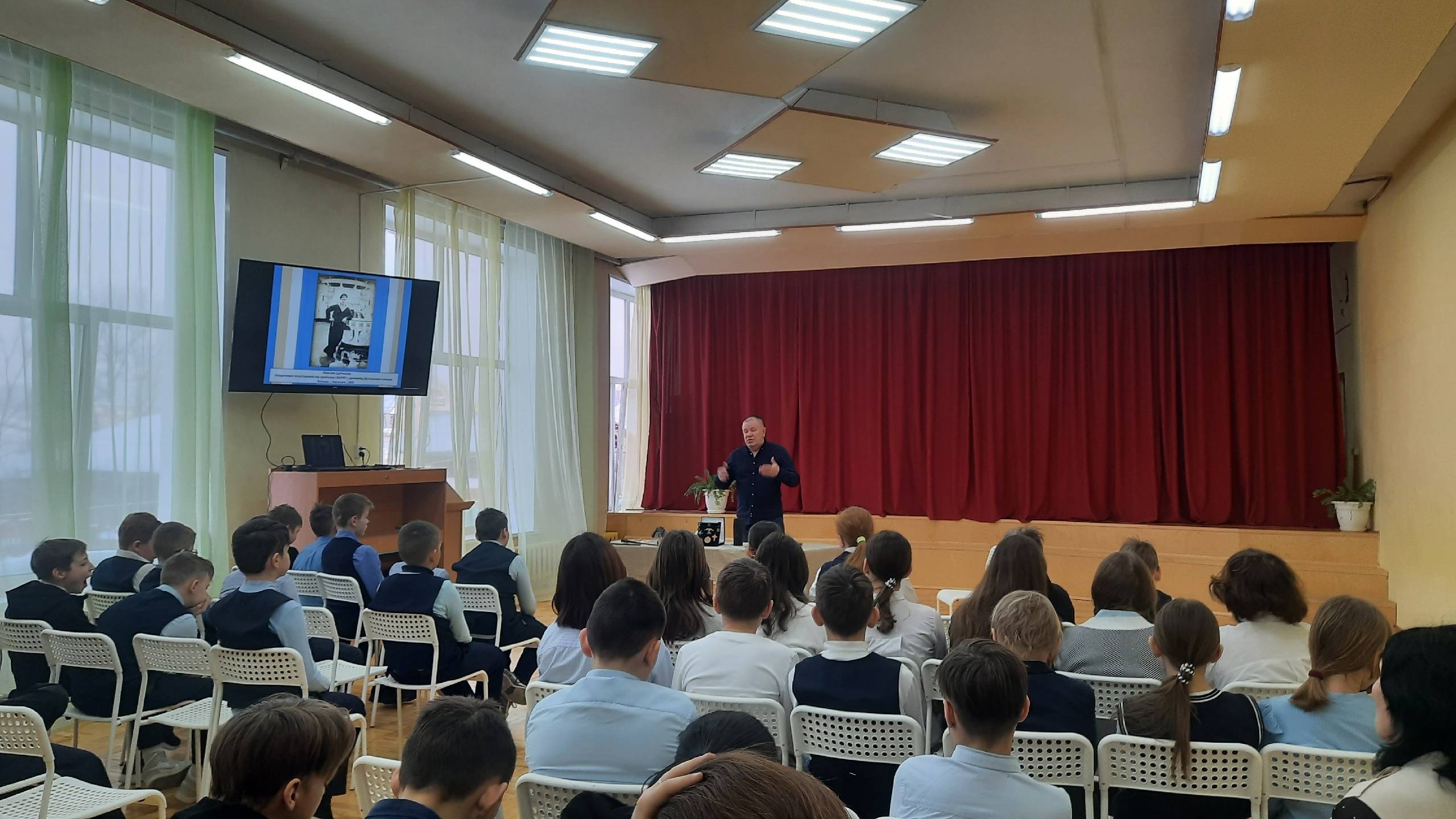 В этот день по просьбе руководства Школы № 3 члены председатель Воткинского городского отделения РВИО Сергей Простнев провел просветительский урок об участии воткинцев в Русско-японской войне.