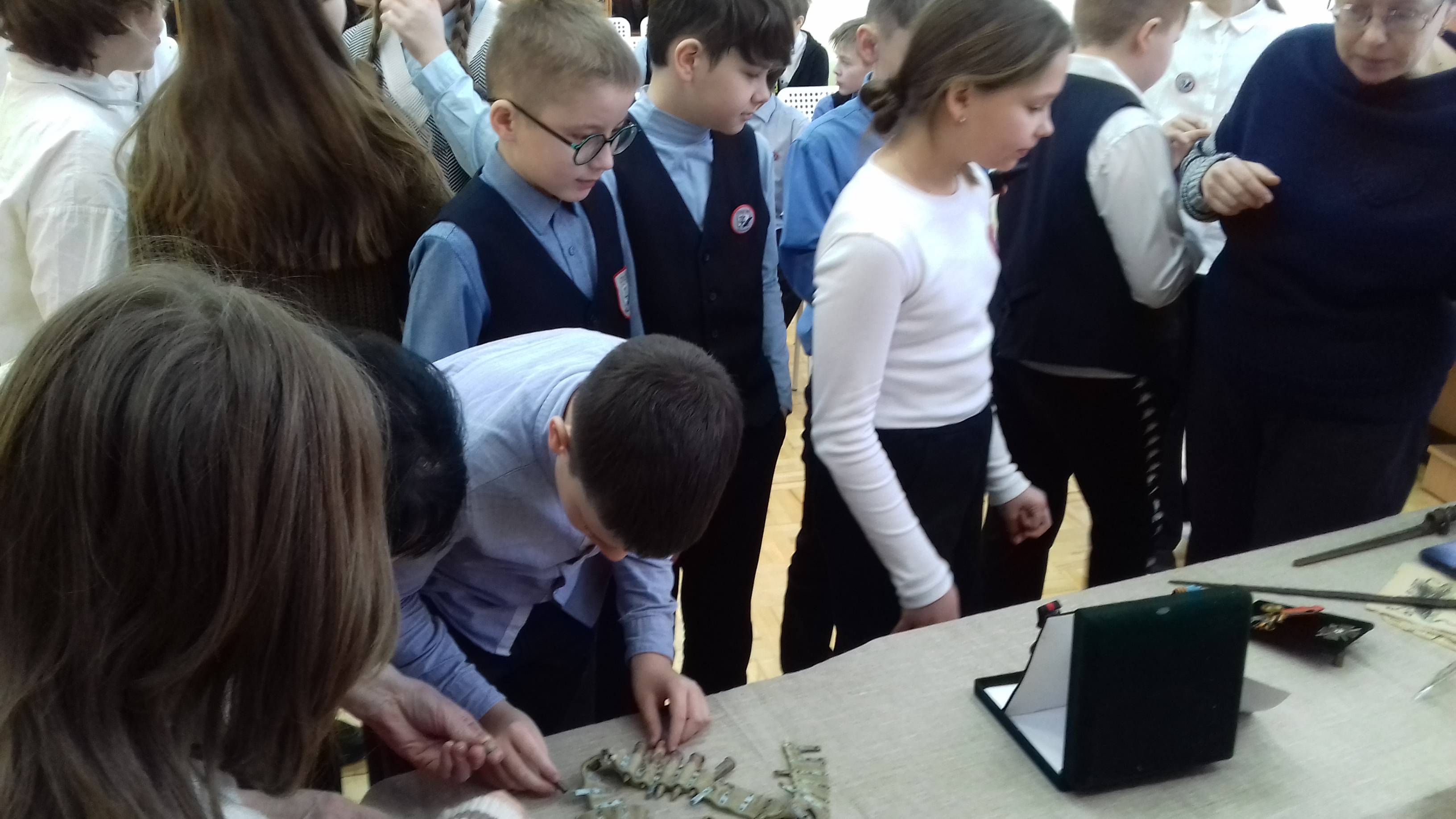 После просмотра ролика, ученики и учителя познакомились с предметным рядом небольшой выставки, относящейся к этим событиям.