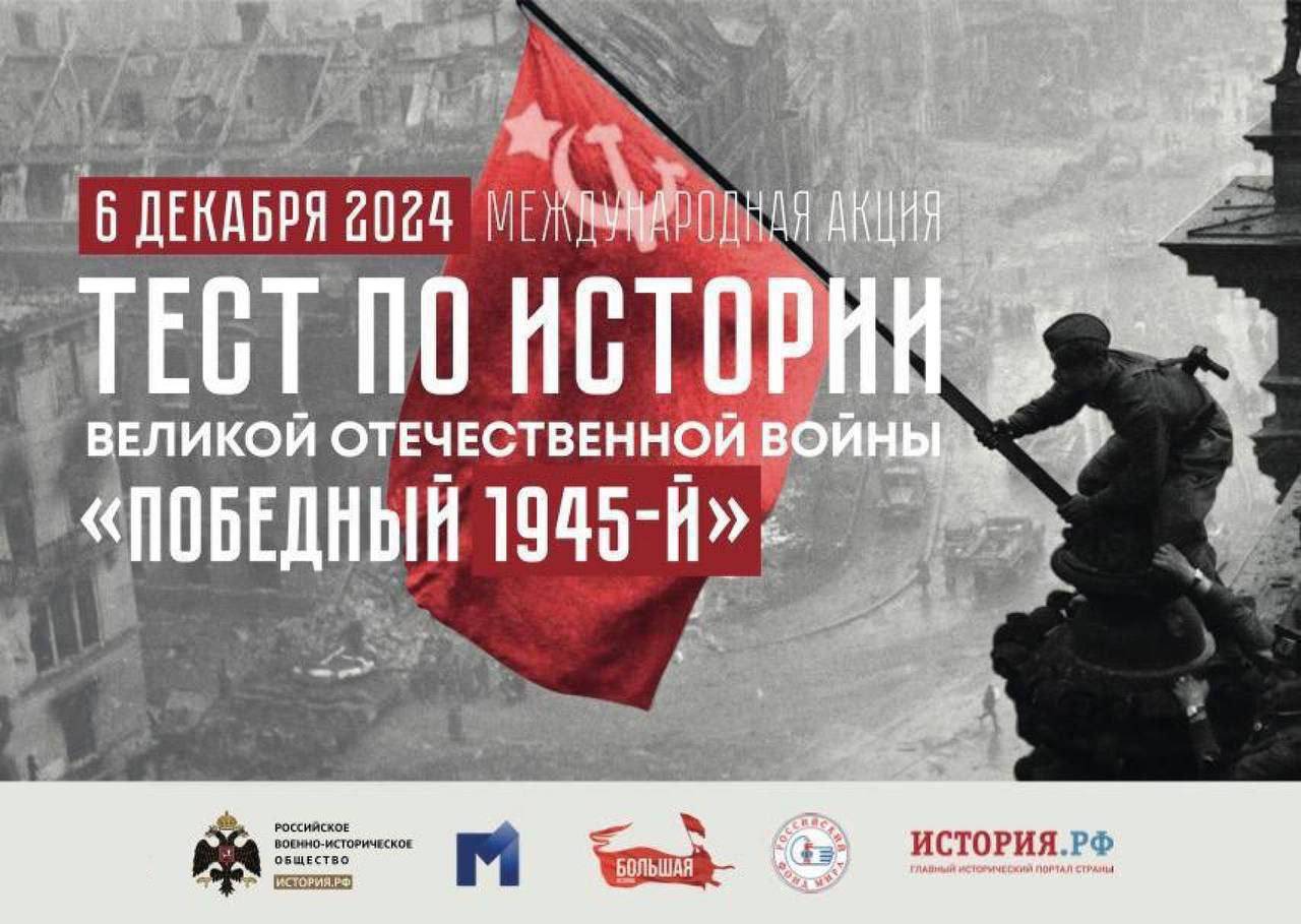 В 2024 году Тест прошел по теме «Победный 1945-й» и посвящен 80-летию победы в Великой Отечественной войне. К данному тесту РВИО подготовило по 40 вопросов для Теста 2-х уровней: «базовый» и «продвинутый». Вопросы касались событий и героев 1945 года. На сайте История.РФ и ресурсах РВИО размещены подборки для подготовки к Тесту с возможностью проверить свои знания в режиме короткого индивидуального тестирования.