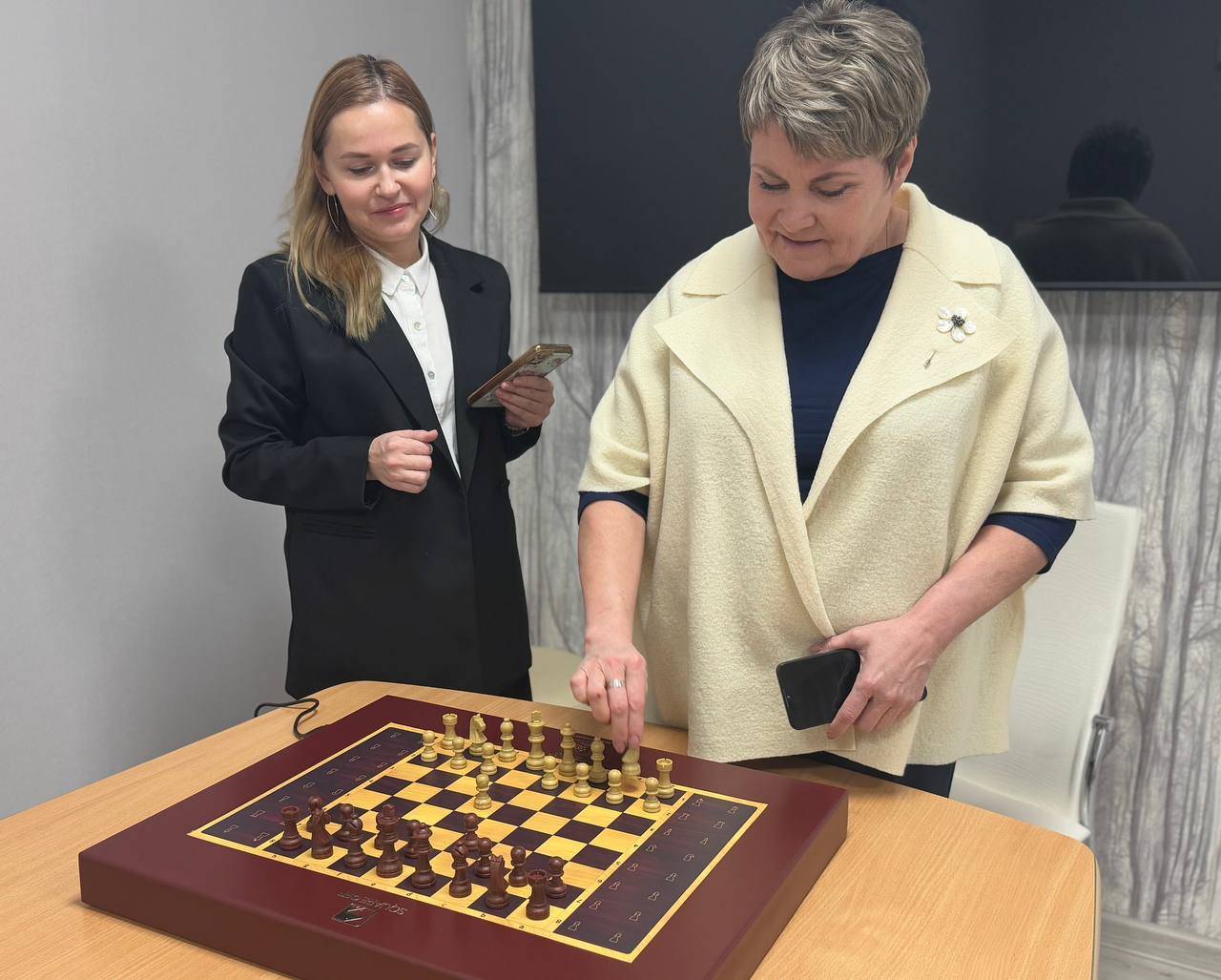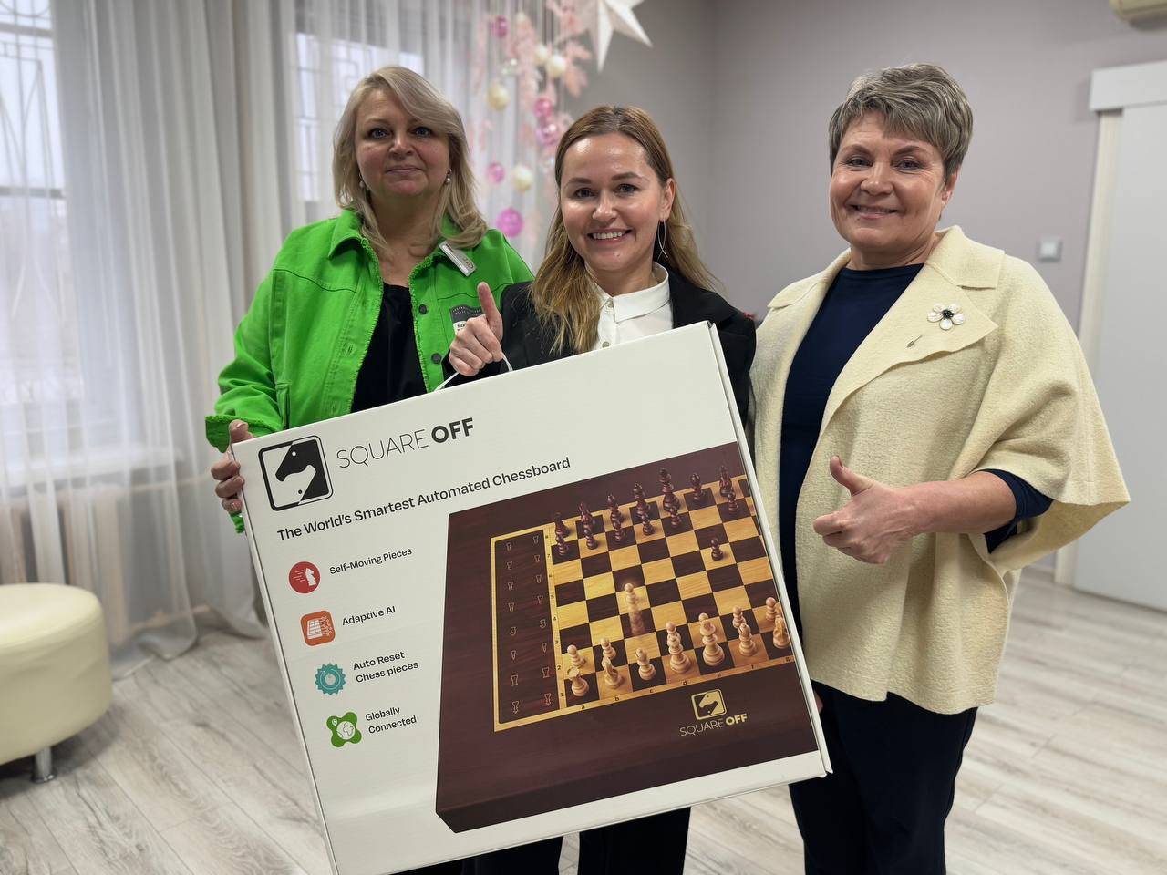 На состоявшейся встрече руководителя Регионального отделения РВИО в Удмуртии, депутата Государственной Думы РФ Ларисы Бурановой с директором Дворца детского (юношеского) творчества Ижевска Натальей Головковой шахматной школе был передан уникальный подарок Председателя РВИО, помощника Президента РФ Владимира Мединского - умные шахматы. По словам Ларисы Бурановой, Ижевск стал одним из 7 городов России куда поступили особые шахматы с интернет-гроссмейстером! "Вы делаете ход, а с вами как-будто играет невидимый соперник. Ответный ход делается автоматически. Фигуры по шахматной доске как по волшебству ходят сами собой! "