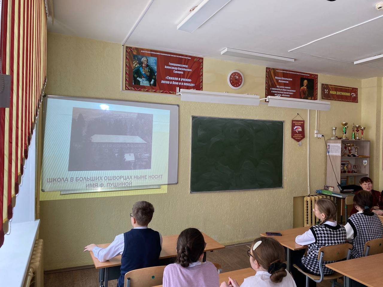 В преддверии Дня Защитника Отечества школу № 49 г. Ижевска посетила племянница Героя Советского Союза, Пушиной Феодоры Андреевны(1923-1943), Суворова Зоя Григорьевна.