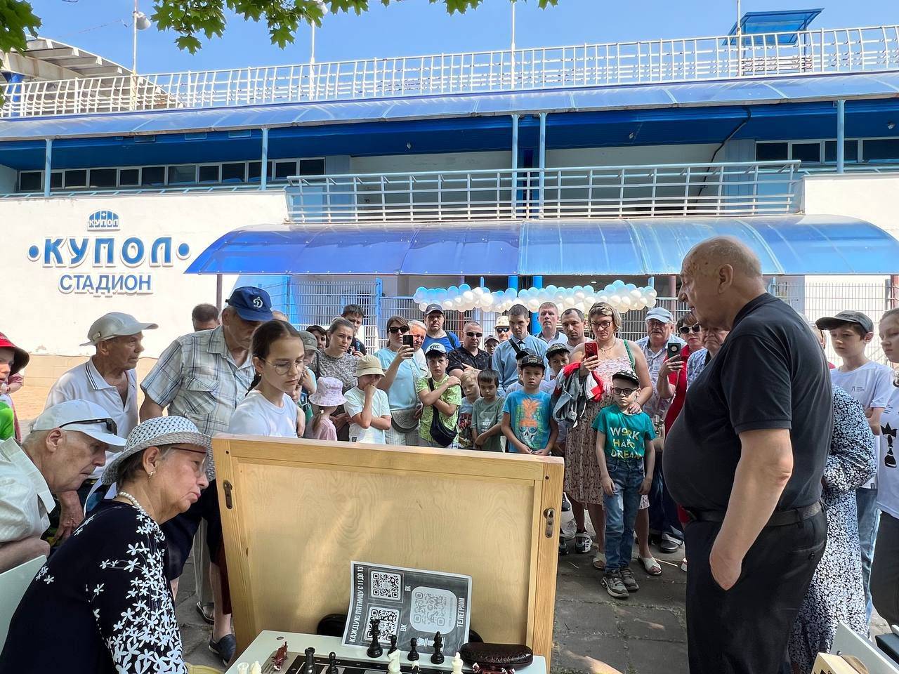 В 10.00 в праздничный день вместе с жителями города возрождена городская традиция шахматного досуга под открытым небом. В открытии приняли участие: