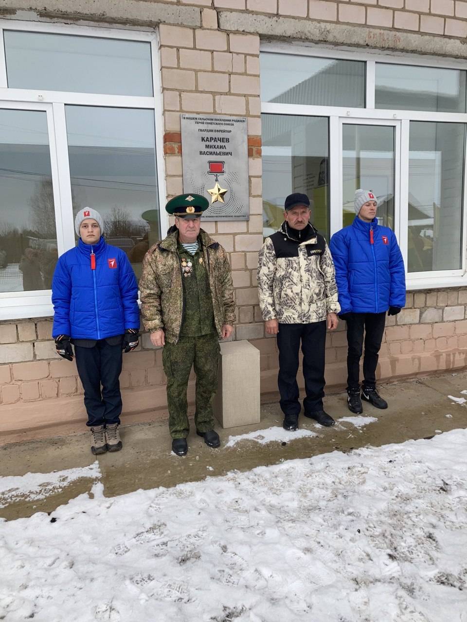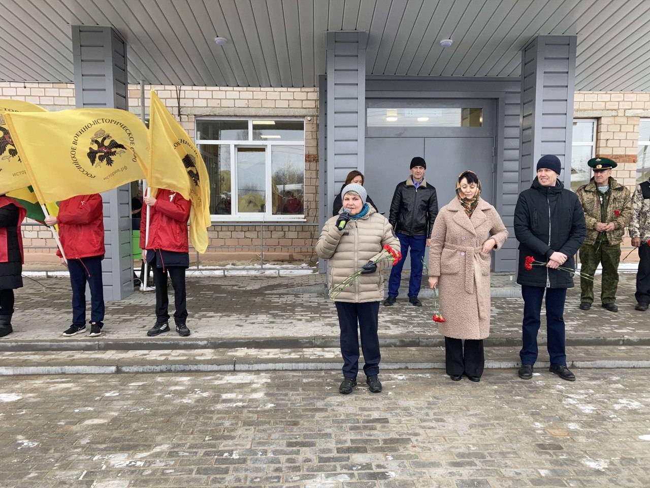 И сегодня, 8 ноября, на здании школы, в присутствии председателя реготделения РВИО, депутата Государственной Думы РФ Ларисы Бурановой, учащихся и учителей школы, Совета ветеранов, представителей «Движения Первых» и юнармейцев, жителей деревни при поддержке Российского военно-исторического общества ему была установлена мемориальная доска.