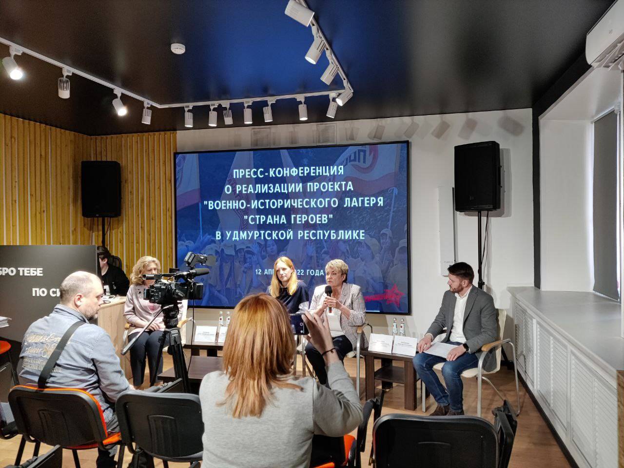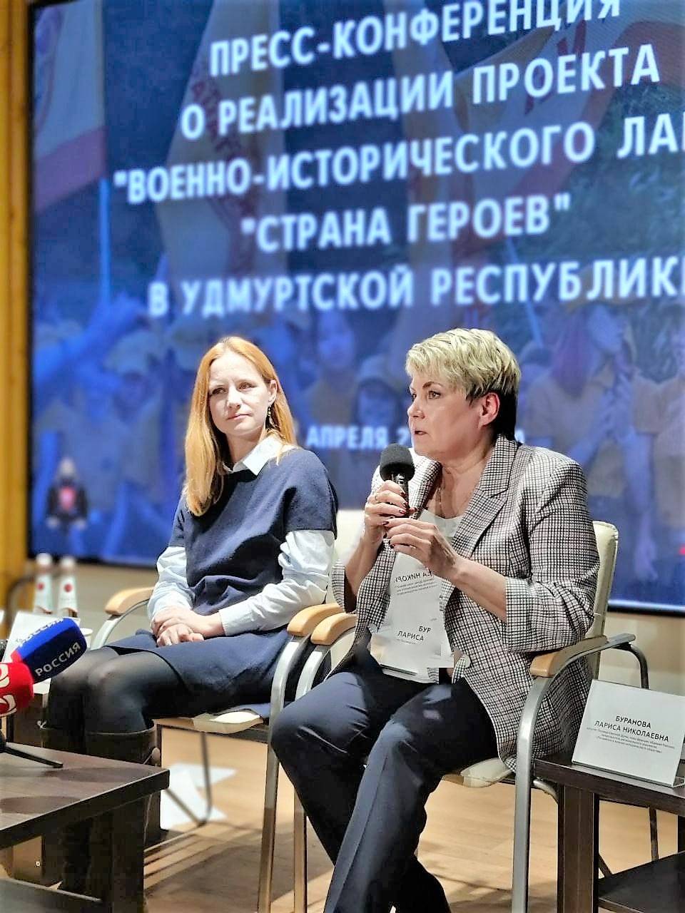 Сегодня на пресс-конференции вместе с председателем регионального отделения РВИО в Удмуртии, депутатом Государственной Думы России Ларисой Бурановой на вопросы журналистов отвечали куратор проекта, представитель Российского военно-исторического общества Алиса Денисенко, министр соцполитики Удмуртии Ольга Лубнина, директор молодежного центра региона Максим Файзуллин.