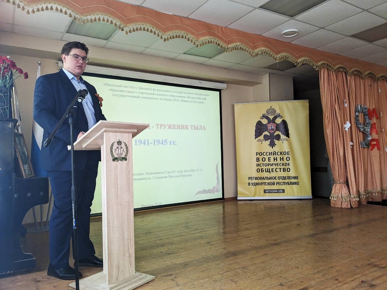6 и 7 мая в Ижевском институте (филиале) ВГУЮ (РПА Минюста России) при содействии Ижевского отделения Российского военно-исторического общества состоялась МЕЖВУЗОВСКАЯ СТУДЕНЧЕСКАЯ НАУЧНО-ПРАКТИЧЕСКАЯ КОНФЕРЕНЦИЯ, участие в которой принимают студенты 1 курса факультета высшего образования, учащиеся колледжей и школьники Удмуртии.