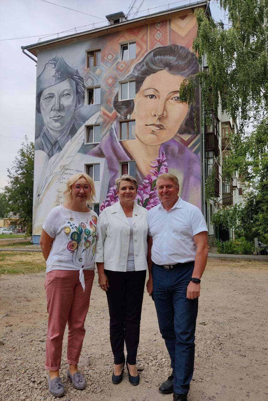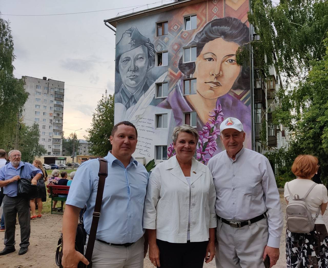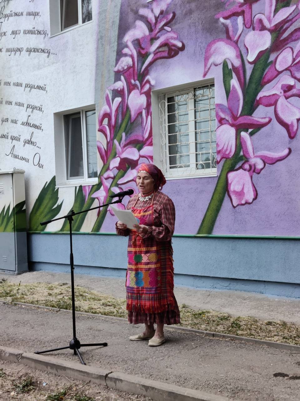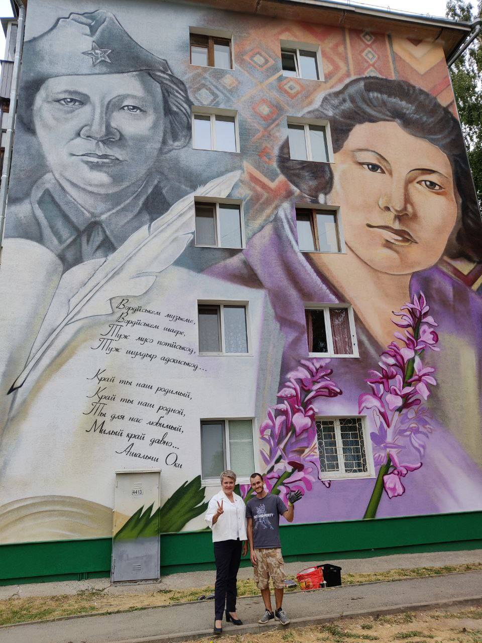 30 августа в присутствии жителей домов по улице Орджоникидзе был торжественно открыт мурал, посвященный первой удмуртской поэтессе, фронтовому врачу и патриоту своей страны Ашальче Оки.