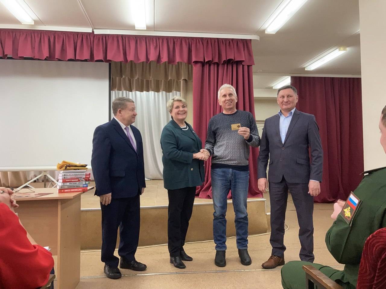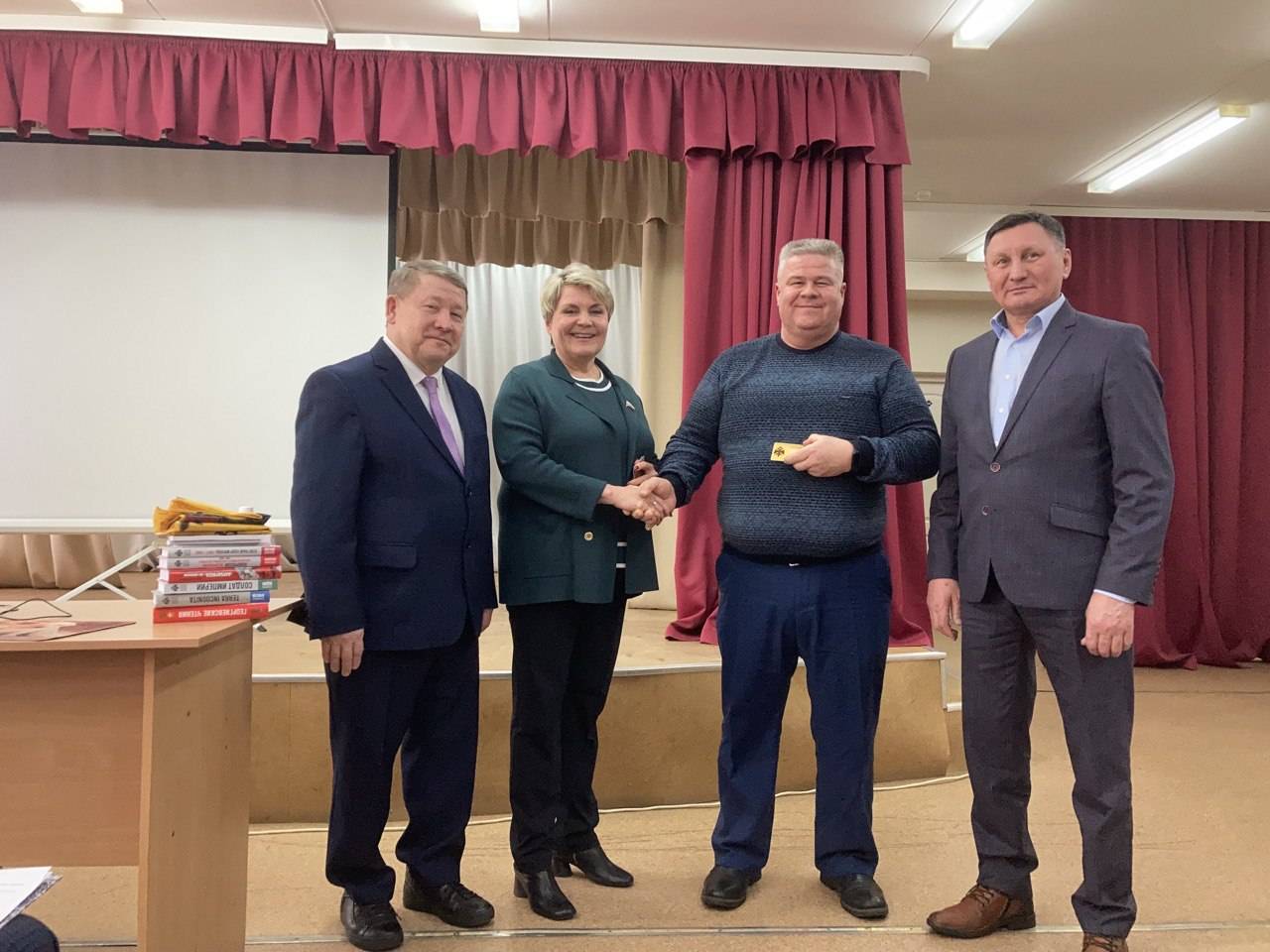 Лариса Буранова познакомила районный актив с деятельностью РВИО, вручила членские билеты вступившим в ряды Общества. В рамках встречи прошло избрание председателя местного отделения. Им стал председатель Кизнерского районного Совета депутатов Андреев Вениамин Петрович, который много лет преподавал школьникам историю. Местному отделению было передано знамя Общества и книги РВИО, знаменующие начало военно-исторической библиотеки в Кизнере.