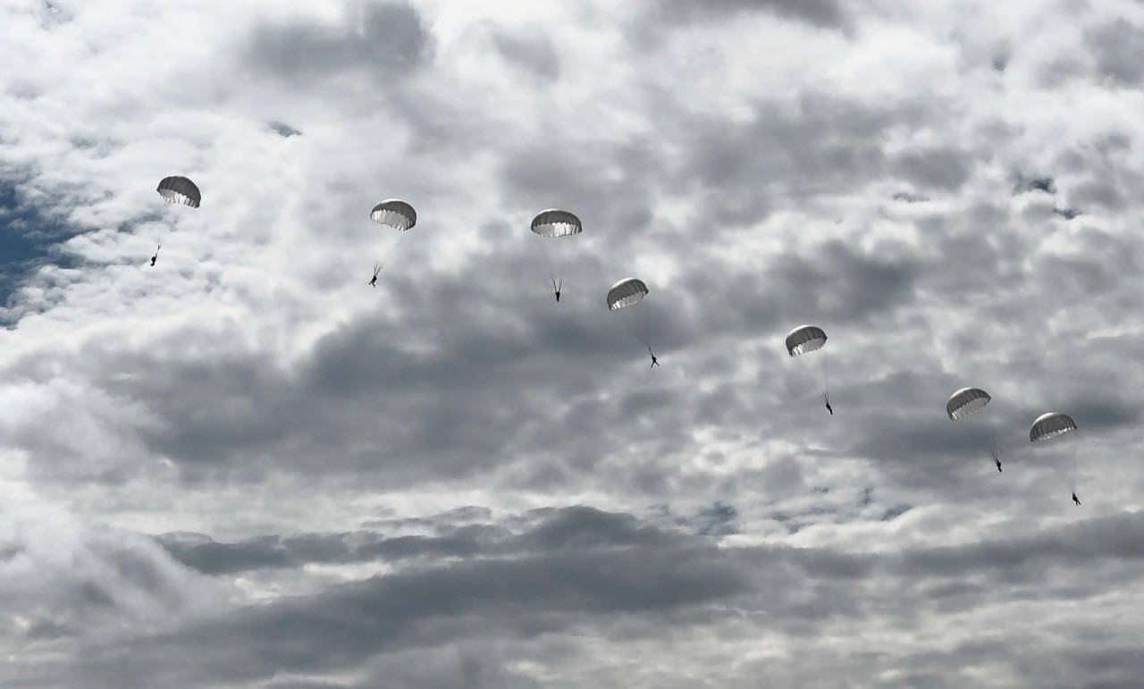 С особым восторгом всеми были встречены показательные выступления парашютистов, проходившие на экстремально малой высоте – 200 метров. При прыжках с высоты 1500 метров с неба вместе с парашютистами спускались флаги Росси, Удмуртии и Военно-Космических сил. Приземление каждого спортсмена зрители встречали громкими и заслуженными аплодисментами.