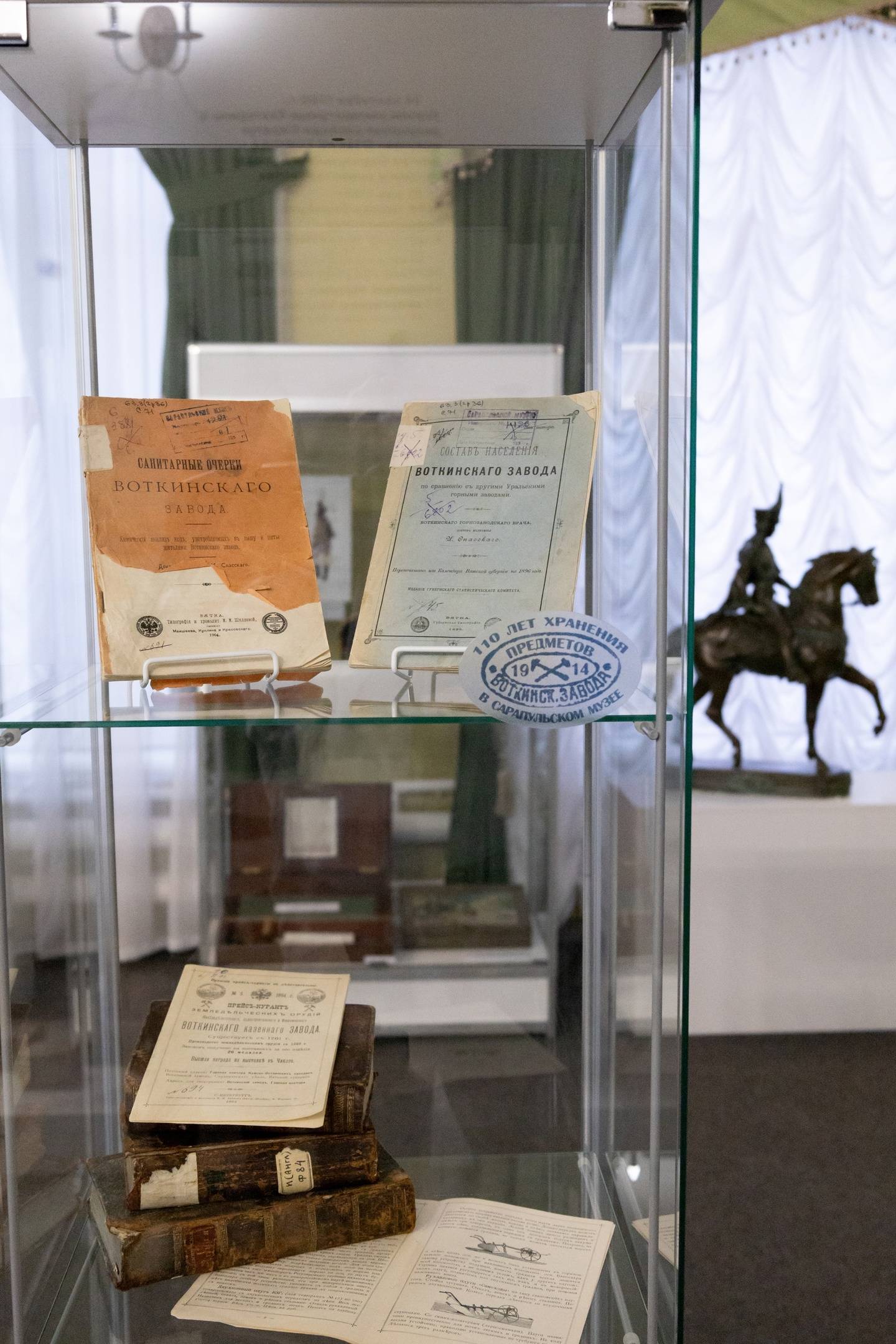 На выставке представлены книги воткинского горнозаводского врача, доктора медицины Ираклия Спасского «Состав населения Воткинского завода» и «Санитарные очерки Воткинского завода». Книги были подарены автором сарапульским врачам А. К. Добронравову и П. И. Ильинскому.