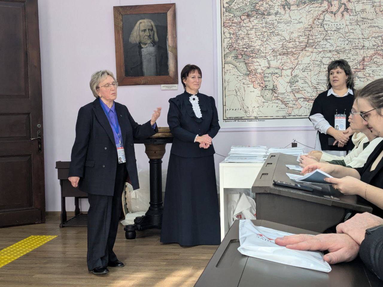 В начале для гостей и участником встречи прошёл открытый интерактивный урок, который для участников Круглого стола провела Заслуженный работник культуры Удмуртской Республики, директор музея, руководитель Сарапульского городского отделения РВИО Сабина Креклина. "Суть таких интерактивных уроков - это погружение в историю. Такой метод позволяет не только понять те или иные события, но и рождает интерес к историческим событиям. И нам, как музейному сообществу очень важно сохранить и развить эту заинтересованность, привести каждого, кто переступает музейный порог, к историческому знанию".