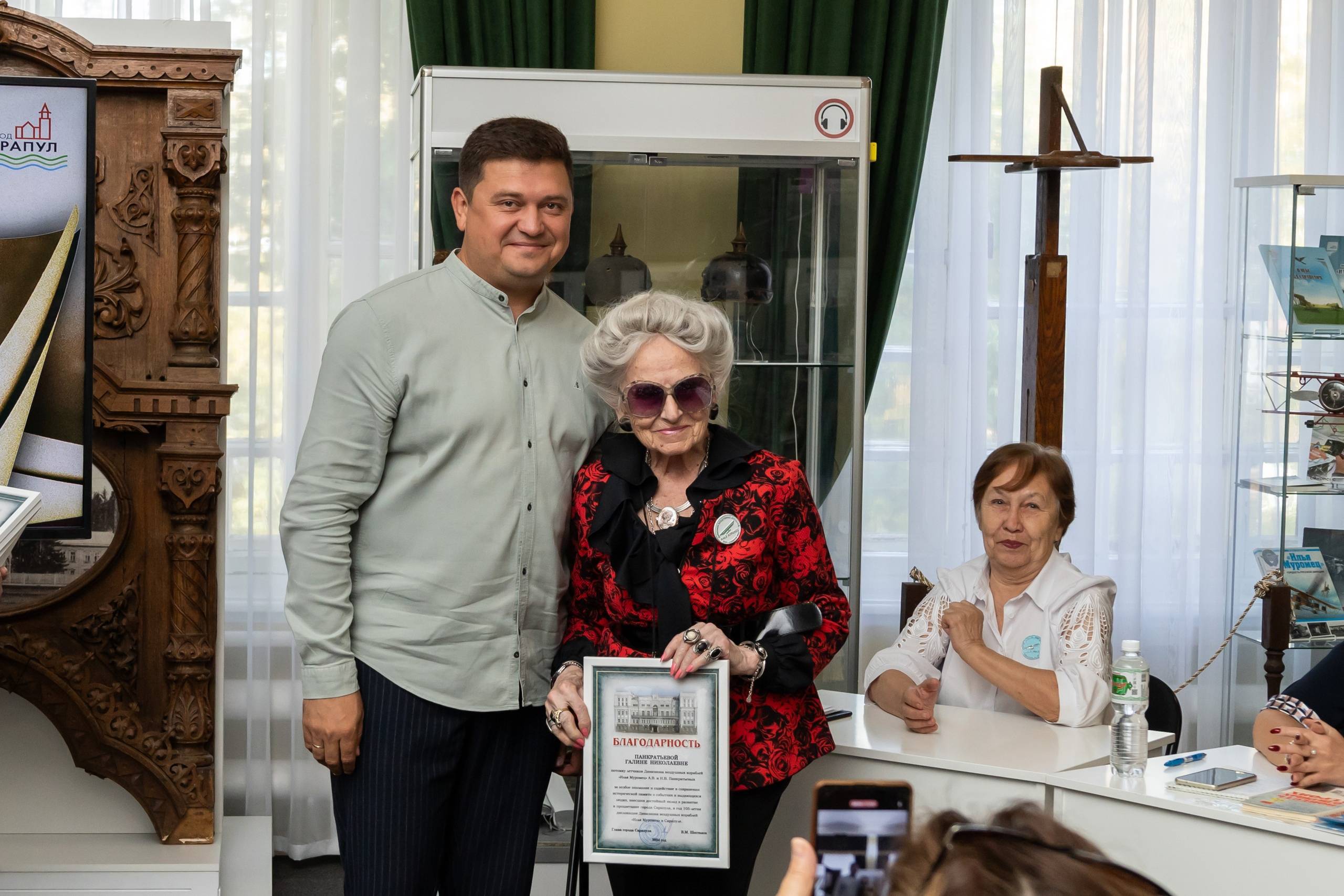 Приветствовал почетных гостей Глава города Сарапула Виктор Шестаков, поделившийся планами о создании модели воздушного корабля «Илья Муромец» с интерактивными элементами на Набережной реки Камы. Также глава города вручил благодарности потомкам за особое внимание и содействие в сохранении исторической памяти о событиях и выдающихся людях, внесших достойный вклад в развитие и процветание города.