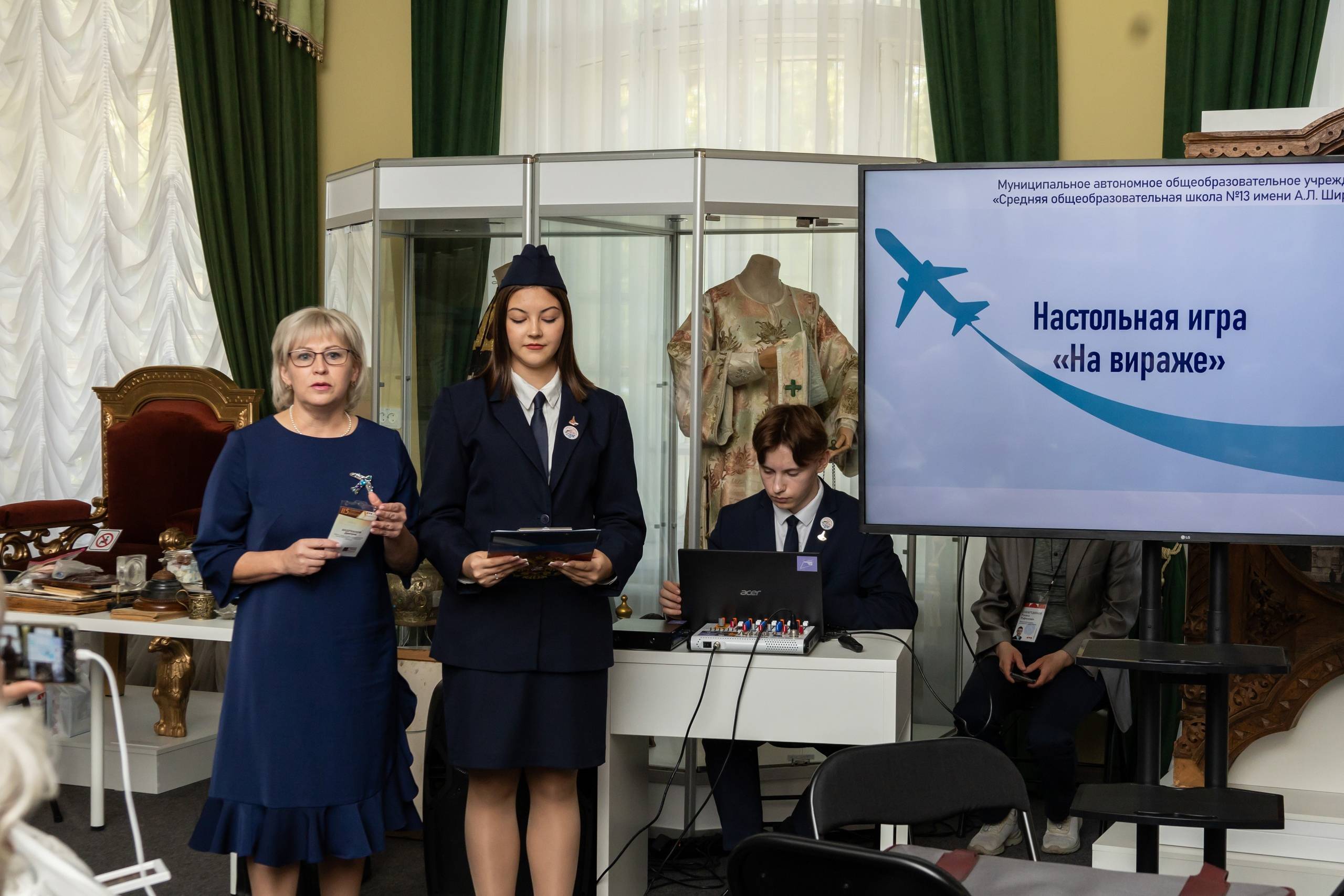 О представителях рода дворян Неведомских в зеркале истории земских реформ и авиастроения сообщила внучка директора Госавиазавода № 14 Петра Неведомского – Лидия Неведомская. А учащиеся 11-го «авиационного» класса школы № 13 им. А.Л. Широких вместе с заместителем директора Ларисой Смищук познакомили участников встречи и почетных гостей города с настольной игрой «На вираже», разработанной обучающимся Дмитрием Андриановым.