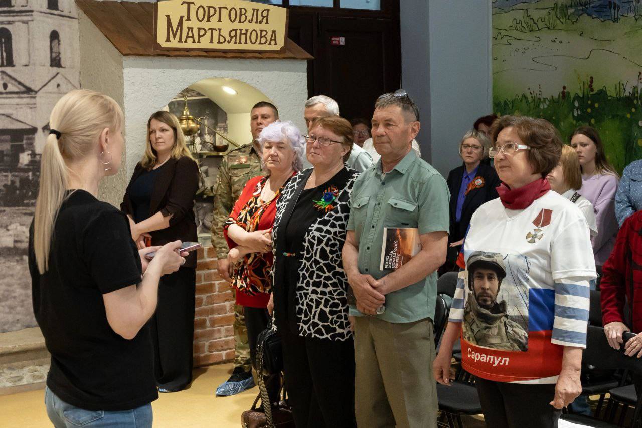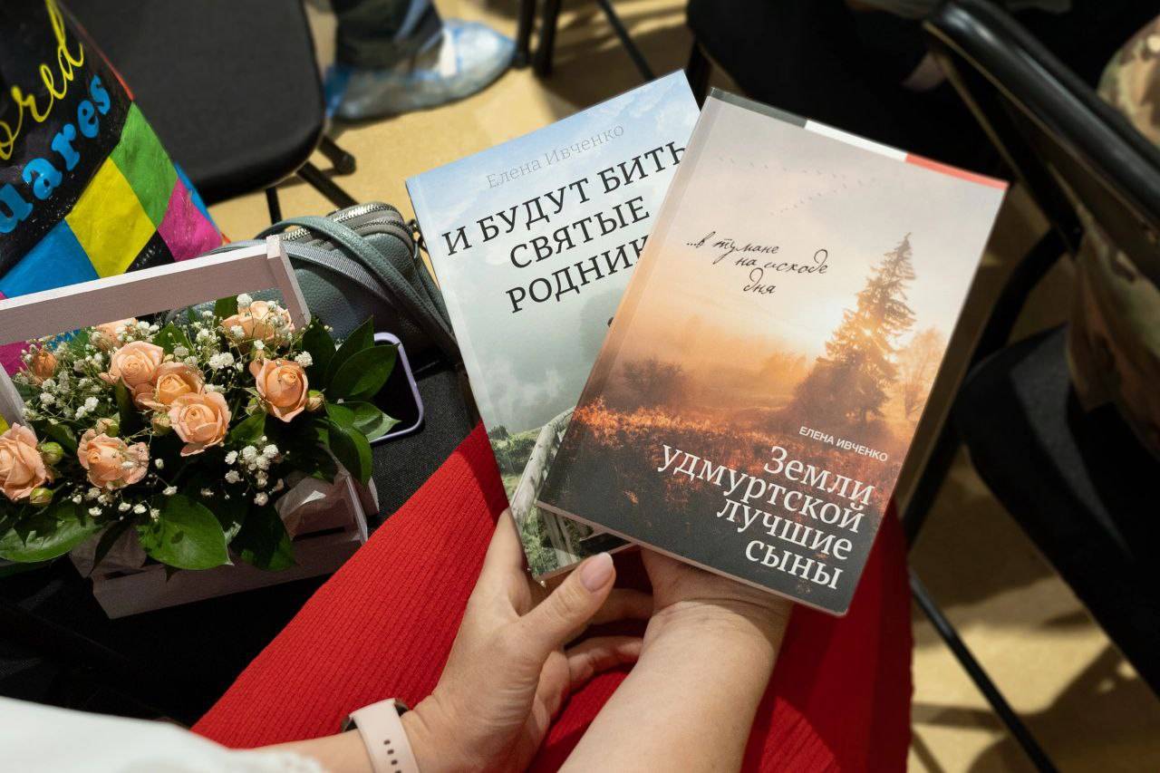 В зале собрались активисты волонтерской организации «Своих не бросаем — Сарапул», представители фонда «Защитники Отечества», Российского военно-исторического общества, участники СВО, а также матери и жены погибших бойцов. Елена делилась своими стихами, написанными от чистого сердца. Родом из Липецка, но давно проживающая в Сочи, она — бывший военный журналист и корреспондент, что позволяет ей глубоко чувствовать военную тематику. Ее стихи, полные эмоций и уважения к бойцам, посвящены специальной военной операции, увековечивая имена героев на страницах своих произведений.