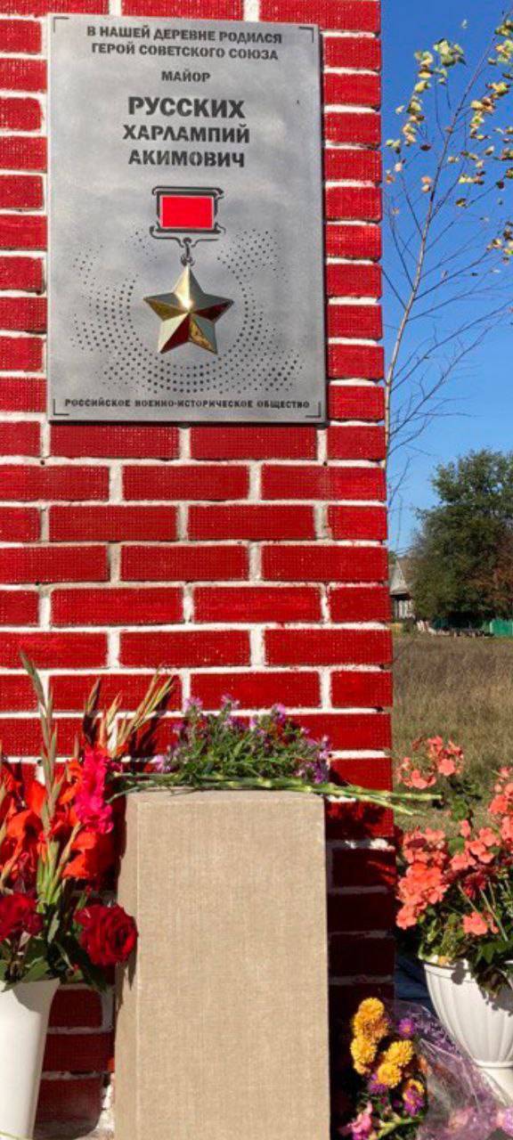 23 сентября 1943 года Харлампий Акимович Русских, командуя тяжёлым паромом, первым переправил на правый берег Днепра десант советских войск (Букринский плацдарм). В течение следующих 10 суток под огнём вражеской артиллерии и ударами авиации, работая без перерыва, паромы Х.А.Русских переправили 300 танков, 184 орудия, 510 автомашин, до 1000 ящиков боеприпасов, более 10 тыс. солдат и офицеров, совершая рейс за 15-20 минут при ширине реки в 620 метров. 23 октября 1943 года за форсирование Днепра Х.А.Русских было присвоено звание Героя Советского Союза с вручением ордена Ленина и медали "Золотая Звезда".