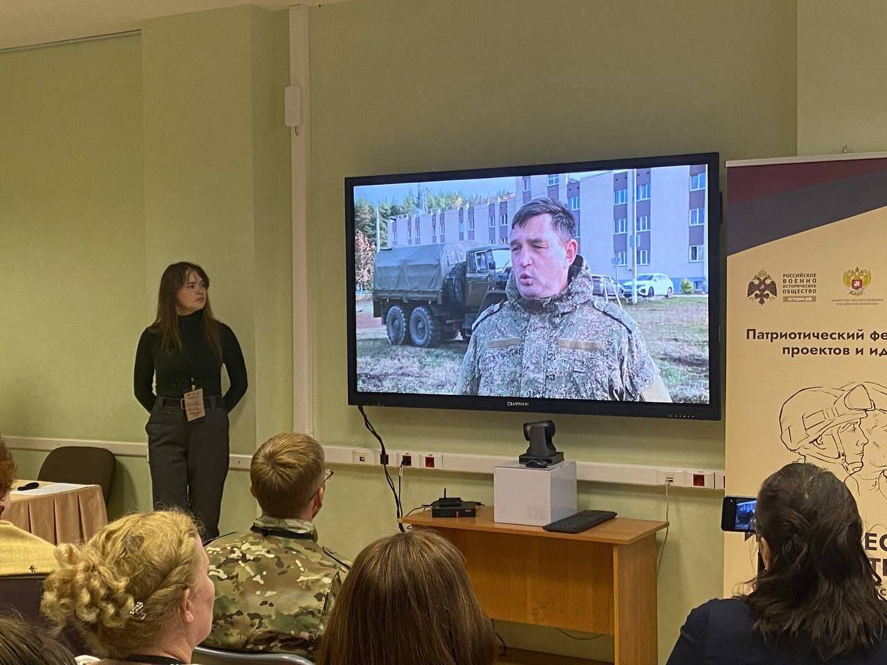 На площадке "Презентация проектов в сфере гражданско-патриотического воспитания" Павел Миронов, участник СВО, руководитель местного отделения РВИО в Игринском районе представил проект патриотической выставки «По ZOVу совести и долгу службы». На выставке представлены рассказы о подвигах земляков - участников спецоперации, военная экипировка, знаки отличия, элементы иностранного снабжения ВСУ, уникальные фото- и видеоматериалы, личные вещи участников спецопераци. В свою очередь дети имеют возможность передать организаторам выставки письма поддержки для бойцов-участников СВО. На память детям вручаются патриотические символы - значки «Z», «V» и «Я горжусь Россией».
