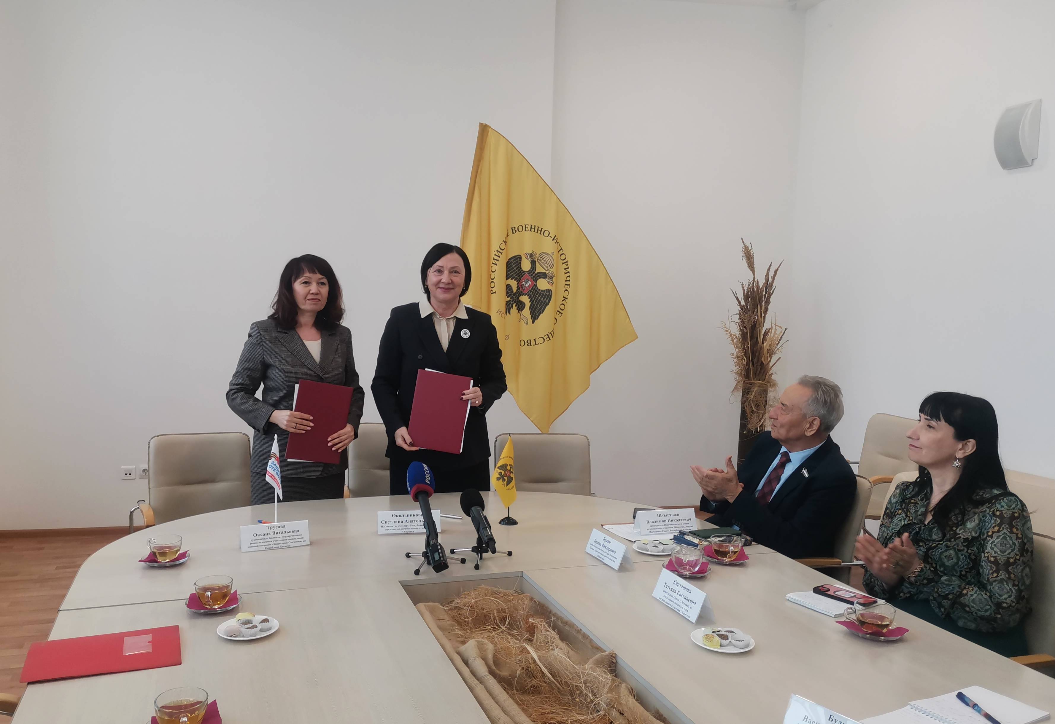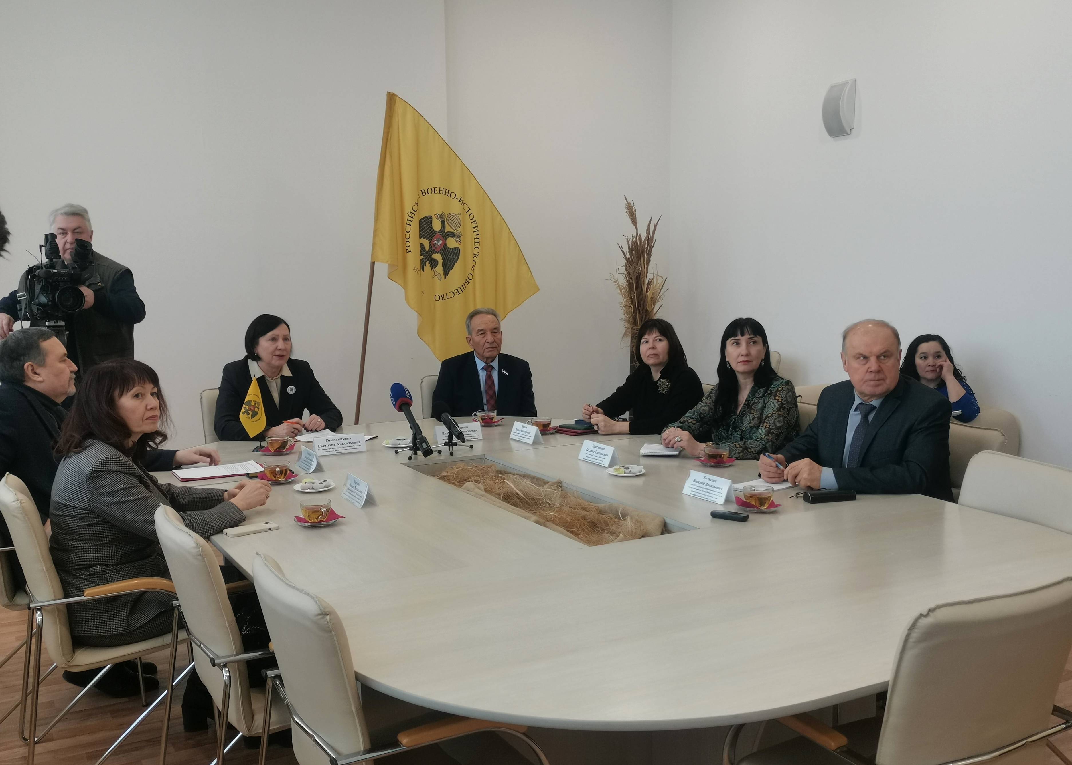Сегодня состоялась пресс-конференция, посвященная итогам работы регионального отделения Российского военно-исторического общества в 2023 году и планам на 2024-ый. Также было подписано соглашение о сотрудничестве с руководителем филиала государственного фонда поддержки участников СВО «Защитники Отечества» Александрой Трусовой.