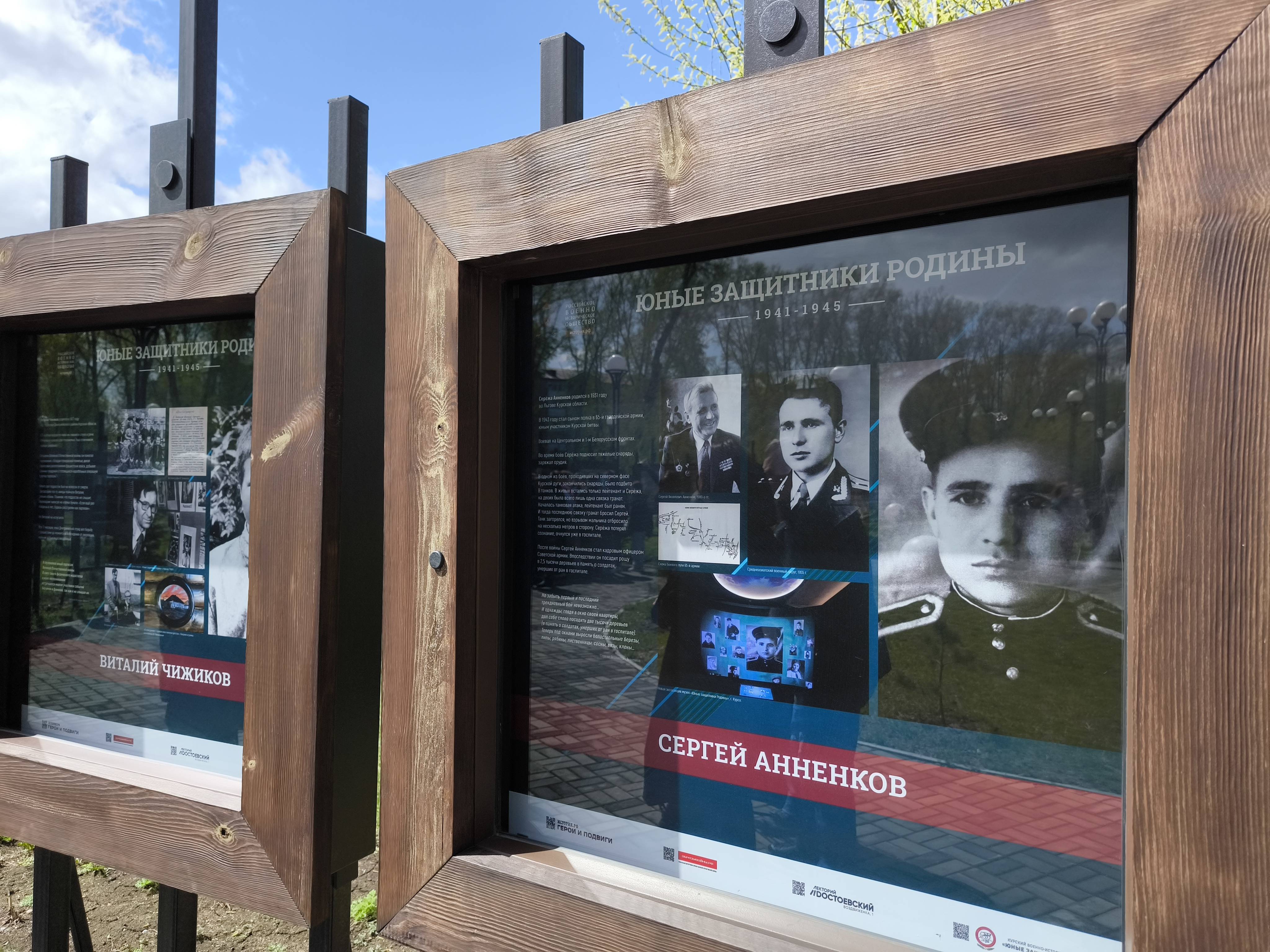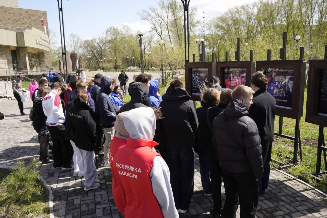 Сегодня на площади перед Хакасским национальным краеведческим музеем им. Л.Р. Кызласова состоялось торжественное открытие. Выставка состоит из 19 стендов, в которых отражены подвиги юных героев войны — Володи Дубинина, Вити Коробкова, Вани Гришанова, Эрика Лукьянова, Виталия Чижикова, Аркадия Каманина и других ребят. На уличных стендах также представлены фотографии, письма и воспоминания из фондов музея «Юные защитники Родины», строки стихотворений, наполненные болью, надеждой и верой в Победу от юных защитников.