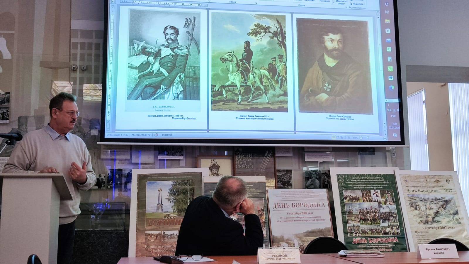 Председатель РО РВИО в РБ Рамиль Рахимов, заведующий кафедрой истории России, историографии и источниковедения УУНТ выступил с темой «Иррегулярная конница Оренбургского края в наполеоновских войнах. История и историческая память».