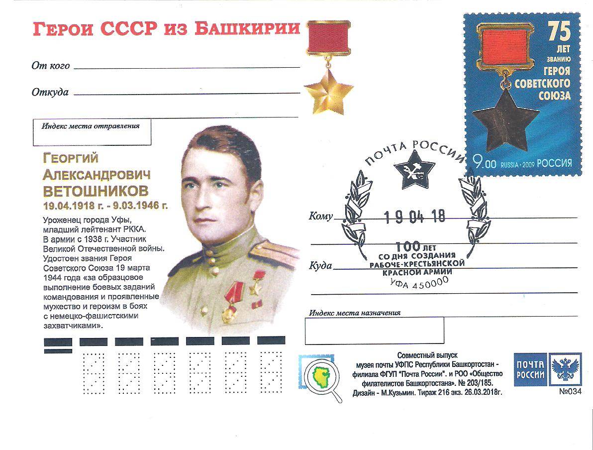 Однако полученные в боях ранения подкашивали здоровье Ветошникова. Врачи направили его в госпиталь г.Баку. Георгий Ветошников так и не вернулся в Уфу, скончался в Баку 9 марта 1946 года и был похоронен на Ясамальском кладбище. Таким образом, судьба уфимца Георгия Ветошникова сквозной нитью проходит через историю сразу трех стран – России, Украины, Азербайджана.