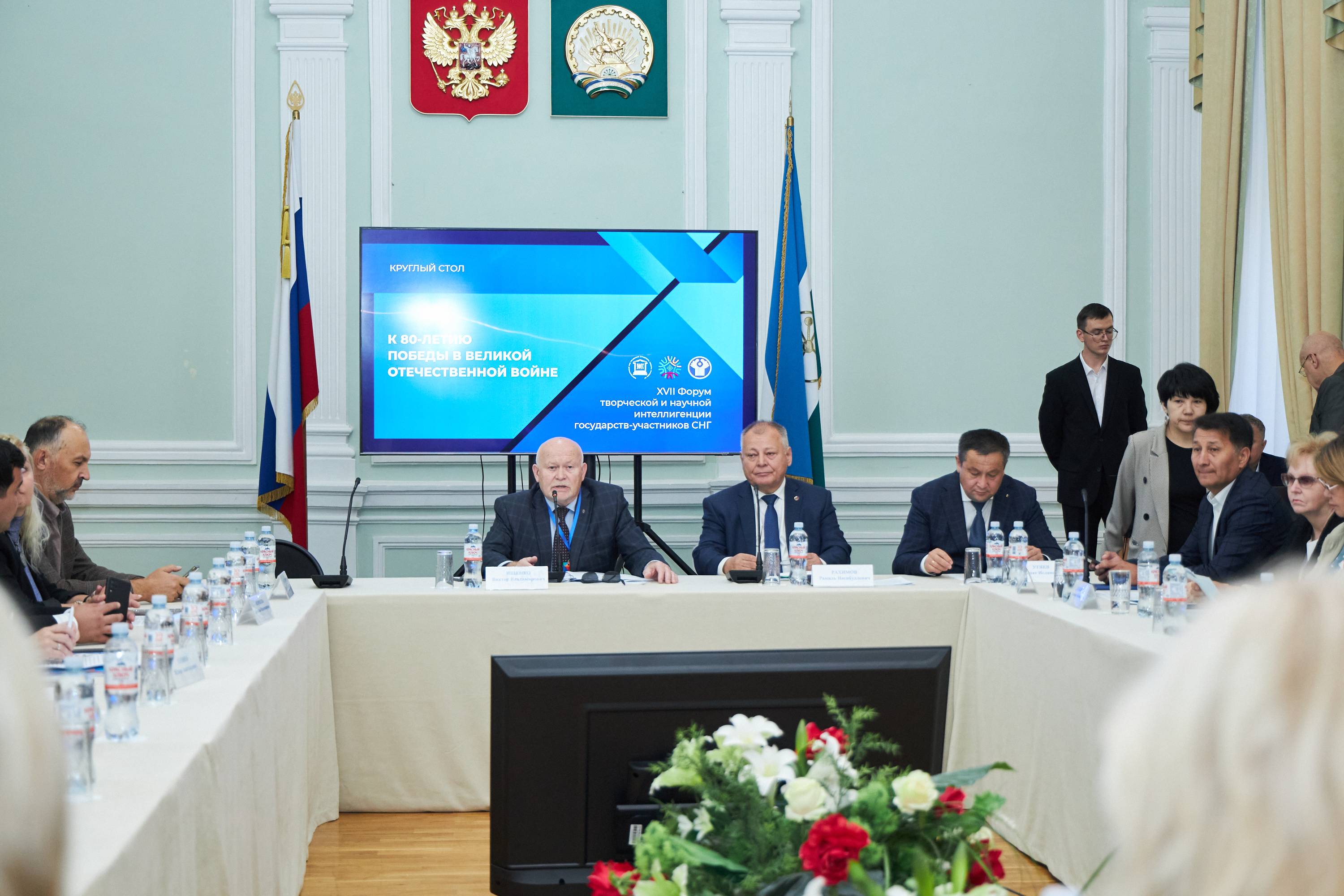 18 сентября 2024 г. в Уфе, в Национальном музее Республики Башкортостан прошел круглый стол «К 80-летию Победы в Великой Отечественной войне», проводимый в рамках XVII форума творческой и научной интеллигенции государств – участников СНГ «Содружество независимых государств: общие ценности и многообразие культур». В работе круглого стола приняли участие представители науки, музеев, библиотек, образовательных и культурно-просветительских учреждений Беларуси, Казахстана, Кыргызстана, России, Узбекистана, Туркменистана. Модераторами круглого стола выступили: заведующий отделом международного сотрудничества Института всеобщей истории РАН Виктор Ищенко, и председатель Регионального отделения Российского военно-исторического общества в Республике Башкортостан, член Общественной палаты Российской Федерации Рамиль Рахимов.