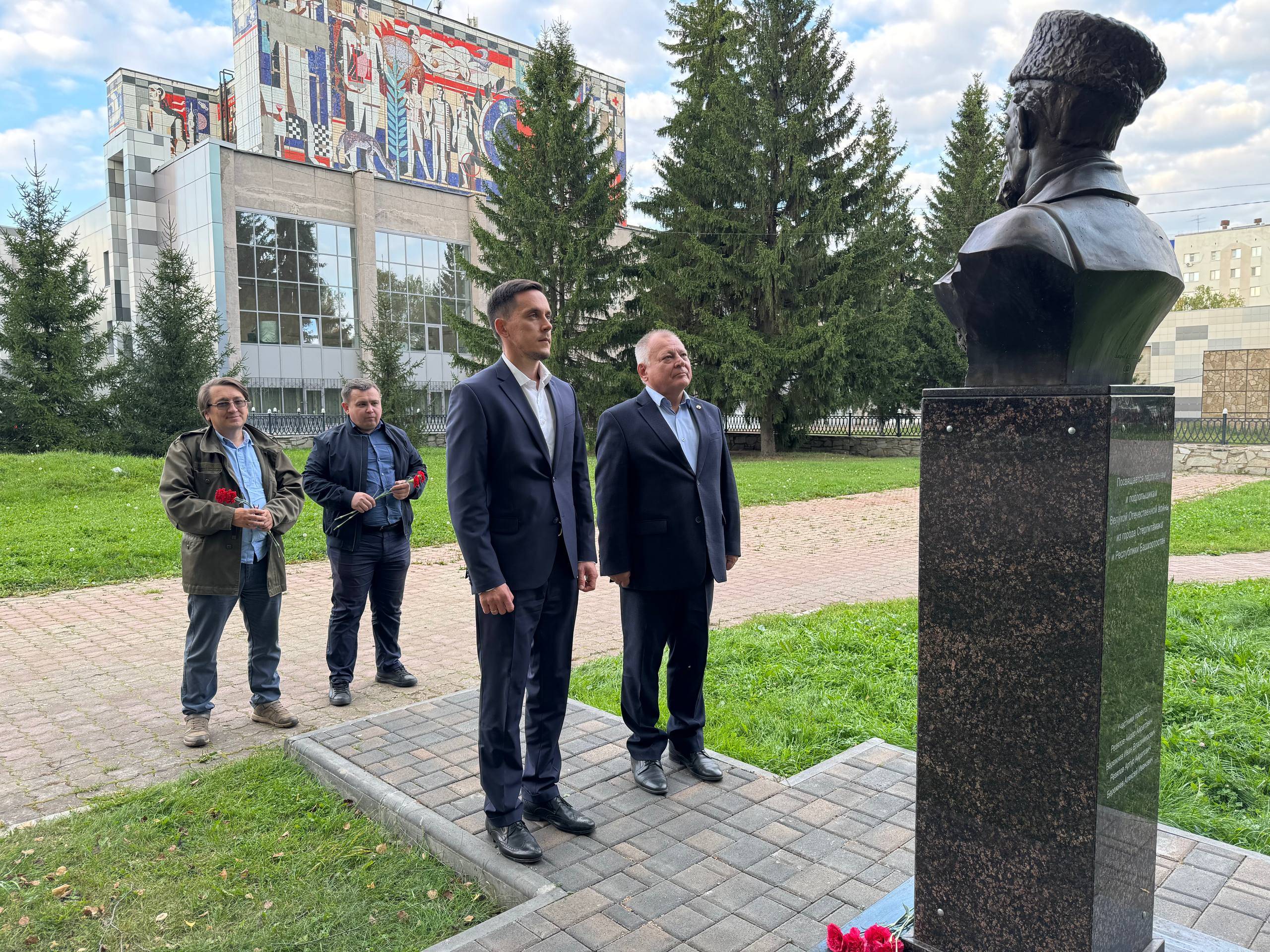 Встреча началась с торжественного возложения цветов к памятнику-бюсту легендарному герою Великой Отечественной войны, советскому партизану и прославленному разведчику Даяну Баяновичу Мурзину.