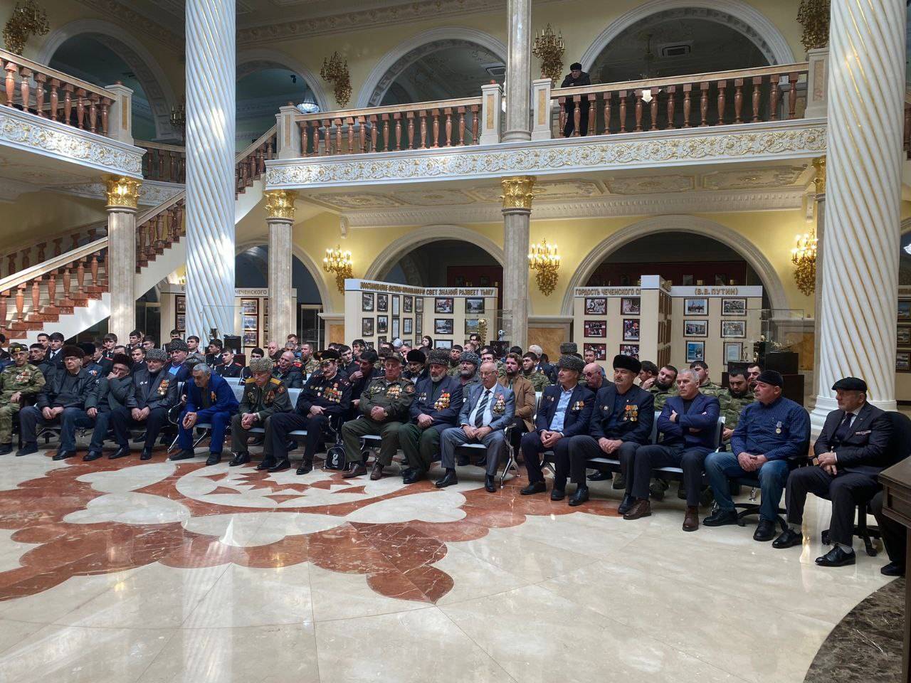 Сегодня, 24 февраля 2023 года в музее им. Ахмата-хаджи Кадырова состоялось мероприятие посвященное Дню Защитника Отечества. По приглашению организаторов мероприятия, в частности заместителя генерального директора Мемориального комплекса Славы им А.А.Кадырова - Ислама Хатуева в мероприятии приняли участие представители общественных организаций Чеченской Республики, ветераны Афганистана, ветераны группы Советских войск в Германии, члены Чеченского отделения Союза Казаков России и Зарубежья, Межрегионального Казачьего Центра России по борьбе с наркоманией и наркобизнесом, студенты учебных заведений, курсанты Суворовского училища, военнослужащие Специального отряда быстрого реагирования "Ахмат" и др.