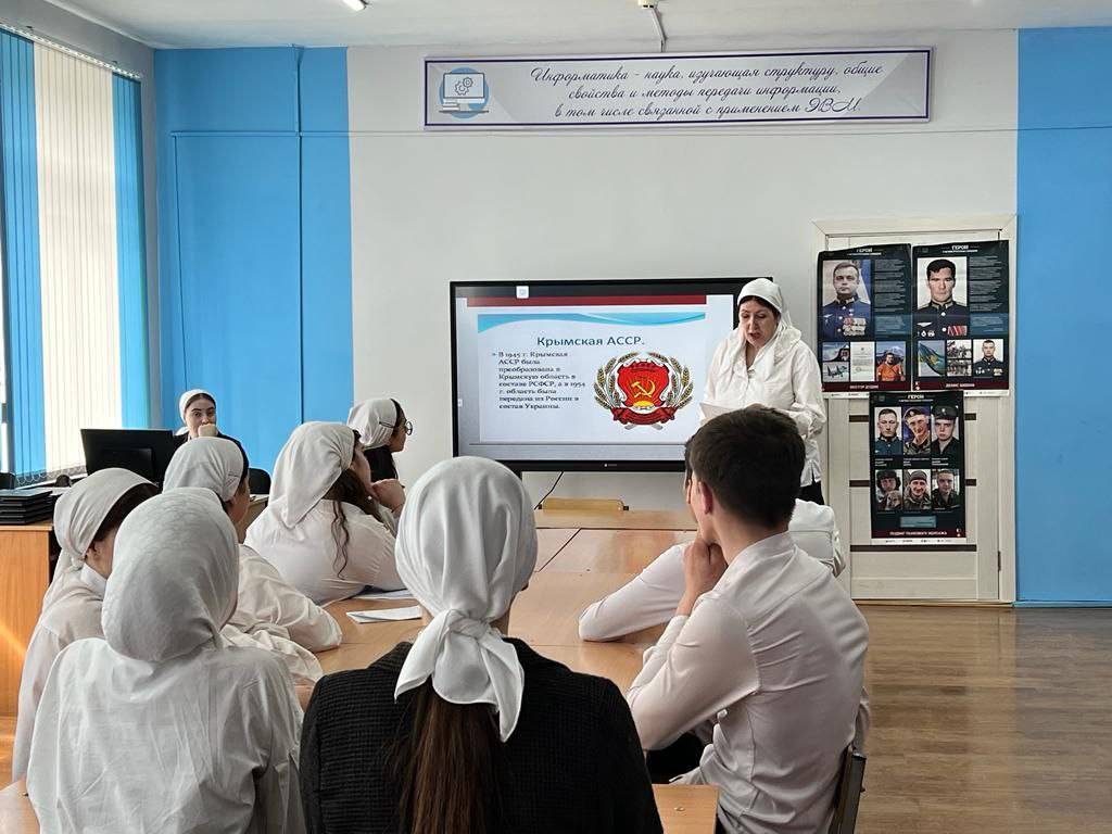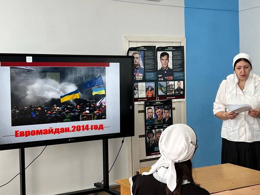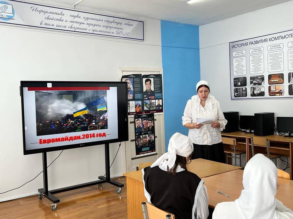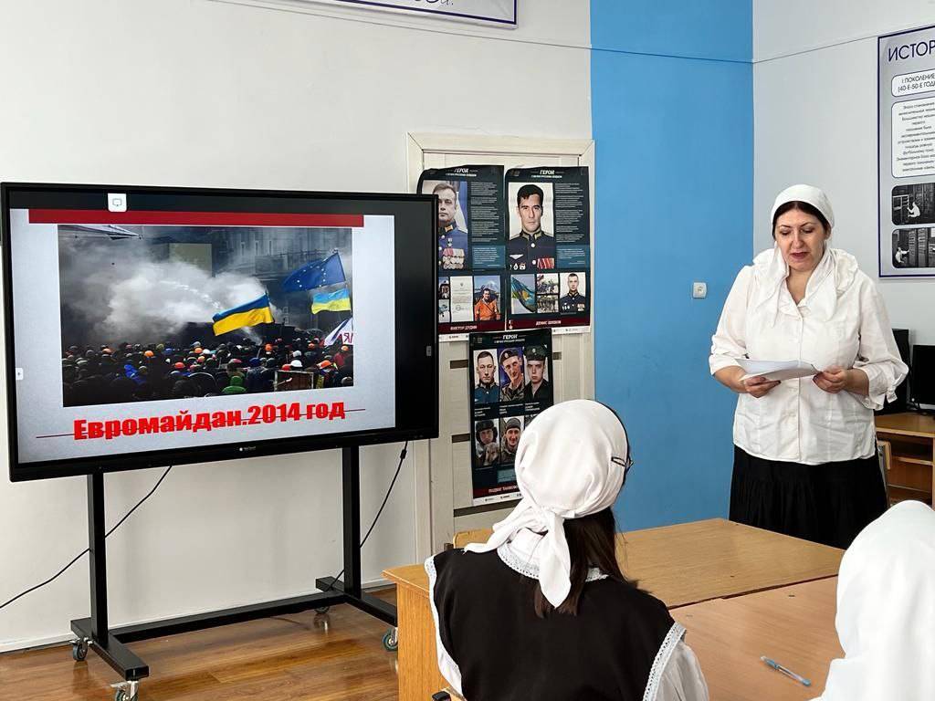 "Российское военно- историческое общество" совместно с членом Российского военно-исторического общества, учителем истории и обществознания МБОУ " СОШ 3 г. Аргуна" Мурадовой Е. Т. провели классный час в 10 Б классе на тему: "Помним всех", посвященный героям Специальной военной операции.