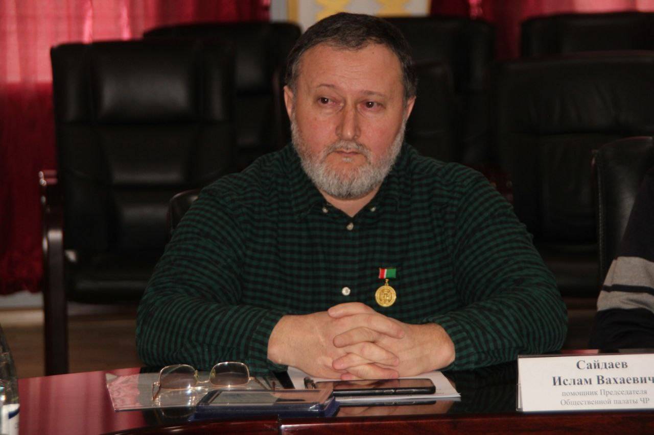 Сегодня на очередном заседании Общественной палаты Чеченской Республики медалью "За вклад в развитие гражданского общества" был награждён известный чеченский журналист и общественный деятель, член Союза журналистов России, член Российского Военно-исторического общества, сопредседатель Чеченского отделения Союза историко-просветительских обществ "Наследие Империи", руководитель Отдельного Чеченского Казачьего округа СКРиЗ, Чеченского отделения МКЦ России, помощник председателя Общественной палаты Чеченской Республики, заместитель директора Национального агентства Чеченской Республики по связям с соотечественниками "Орца" (Помощь) Ислам Вахаевич Сайдаев.