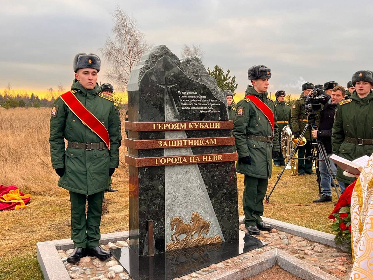 14 ноября в Ленинградской области открыли монумент воинам Кубани на Интернациональной аллее Памяти объекта культурного наследия федерального значения "Памятник «Невский пятачок»".