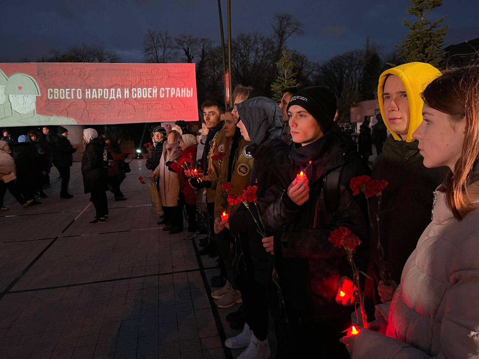 В церемонии приняли участие представители администрации Краснодарского края,города Краснодара,общественные деятели,студенты вузов города. В память о воинах, чьи имена остались неизвестными, была объявлена минута молчания,а после участники возложили цветы к мемориалу.