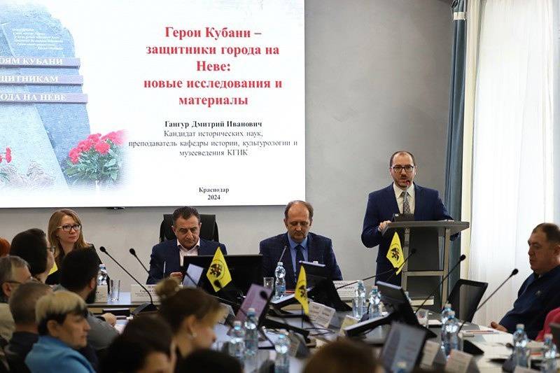 Открыл круглый стол просмотр видеоролика об установке мемориала воинам-кубанцам, принимавшим участие в обороне Ленинграда на «Невском пятачке». Первым в рамках встречи с докладом на тему «Герои Кубани – защитники города на Неве: новые исследования и материалы» выступил кандидат исторических наук, преподаватель кафедры истории, культурологи и музееведения КГИК Дмитрий Гангур. С презентацией интерактивной выставки «Блокадный Ленинград в литературе» выступила кандидат педагогических наук, доцент, заведующая кафедрой информационно-библиотечной деятельности и документоведения Ольга Уржумова. Об осмыслении трагедии Ленинграда в советском кинематографе рассказал профессор кафедры кино, телевидения и звукорежиссуры Григорий Гиберт.