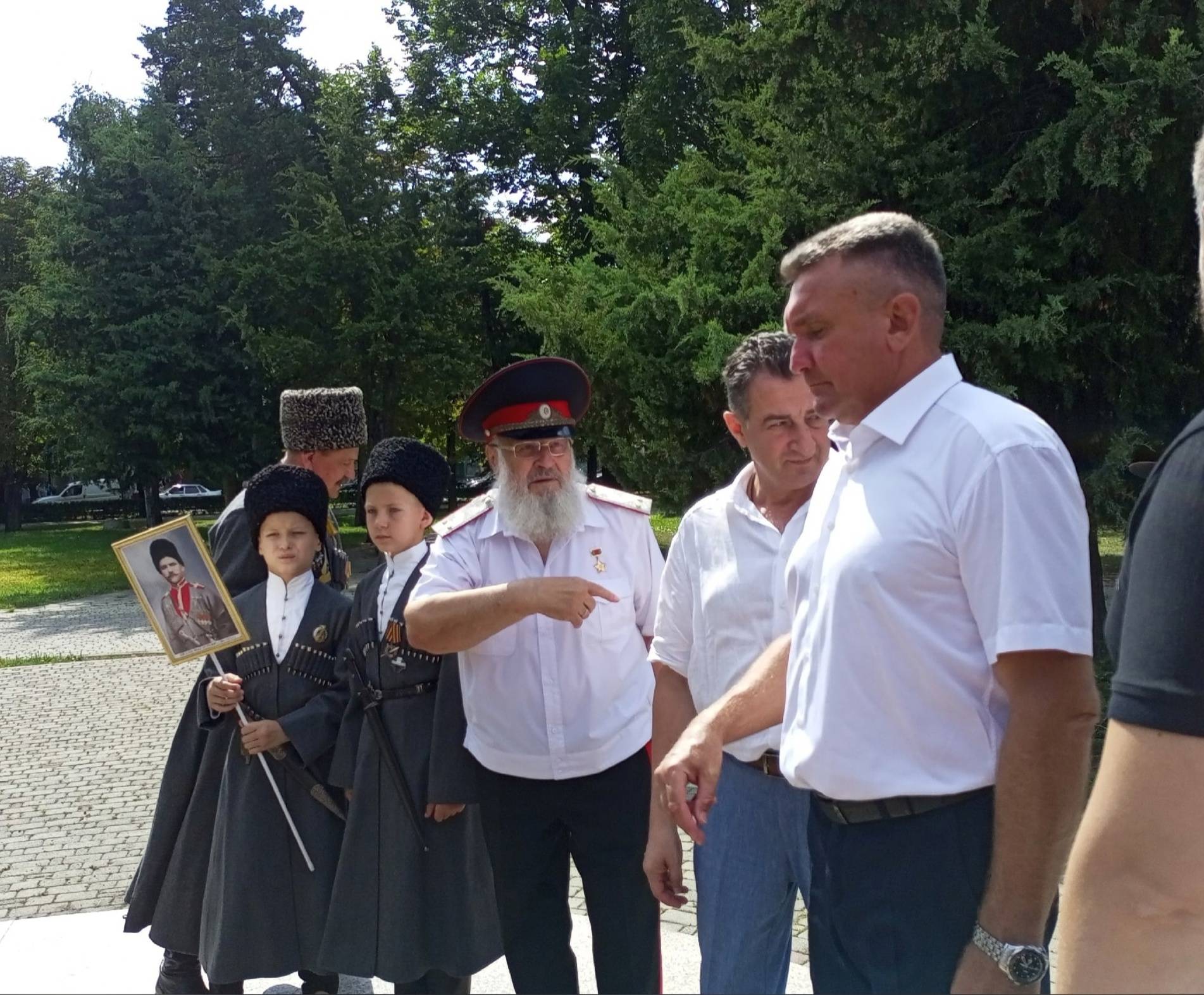 Сама лекция проходила около памятника «Славным сынам Отечества казакам и горцам».