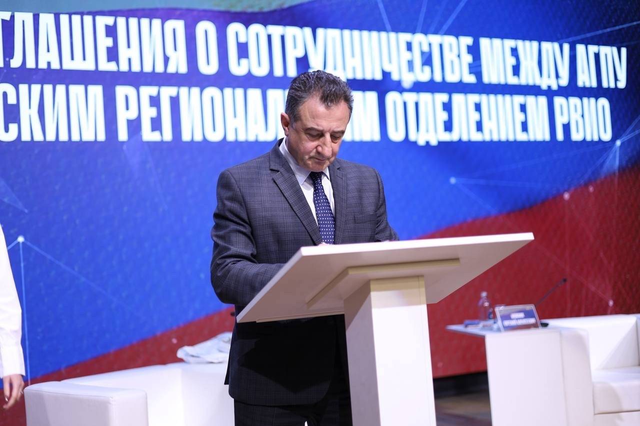 Сегодня, 20 апреля, на базе Армавирского государственного педагогического университета состоялась официальная встреча ректора АГПУ Нижника Е.А. и председателя КРО РВИО Зенгина С.С. В рамках торжественного мероприятия стороны подписали соглашение о сотрудничестве и обсудили перспективы дальнейшей совместной работы.