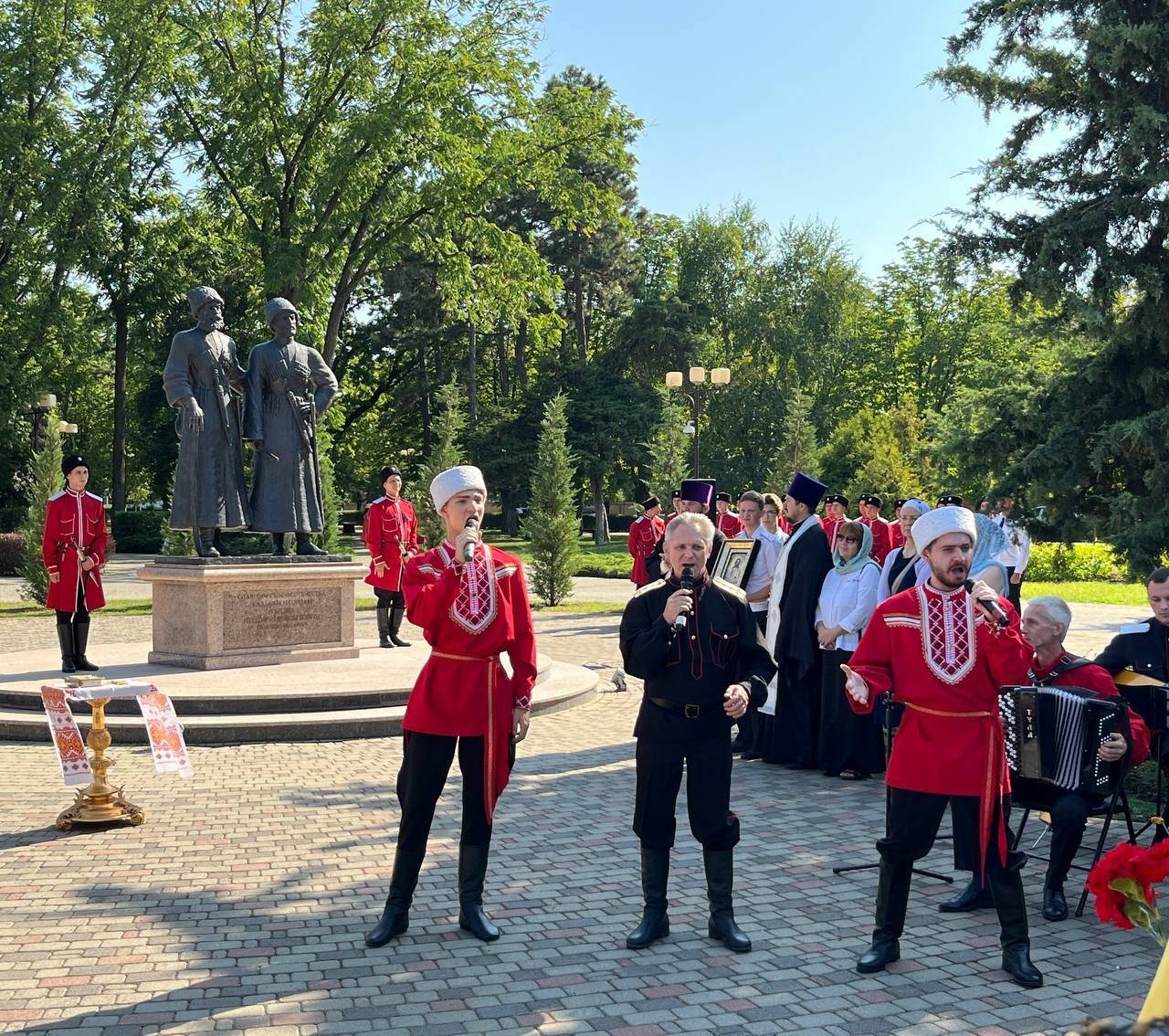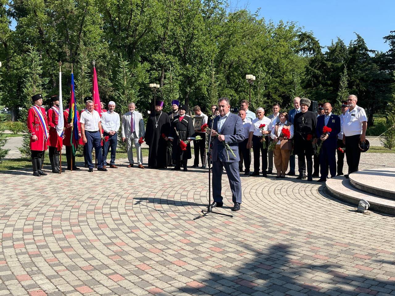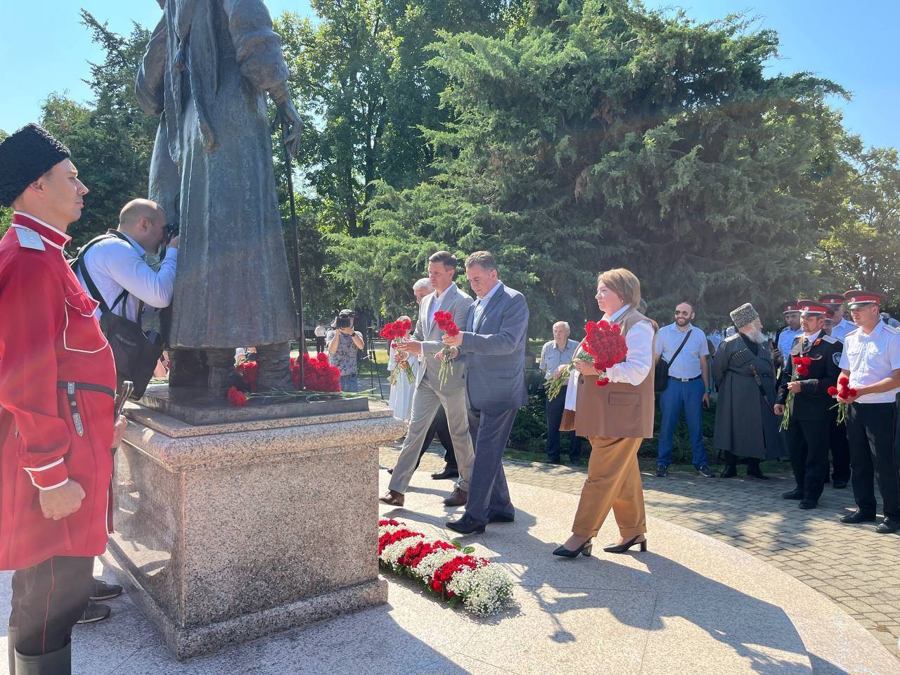 Финалом мероприятия стала минута молчания и торжественное возложение цветов и венков к памятнику казаку и горцу.
