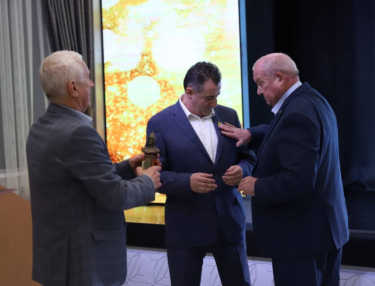 Константин Борисович рассказал о вкладе Сергея Семёновича в патриотическое воспитание молодежи и вручил юбиляру медаль Александра Невского, бюст, а также книги, переданные в подарок от Ростислава Мединского. Также Сергею Зенгину вручили медаль министерства обороны РФ за установку памятников Защитникам Отечества.