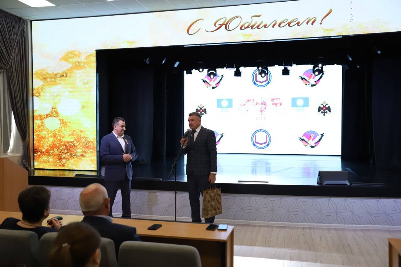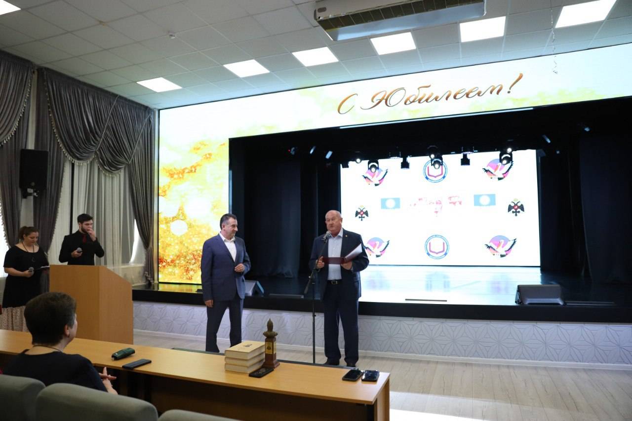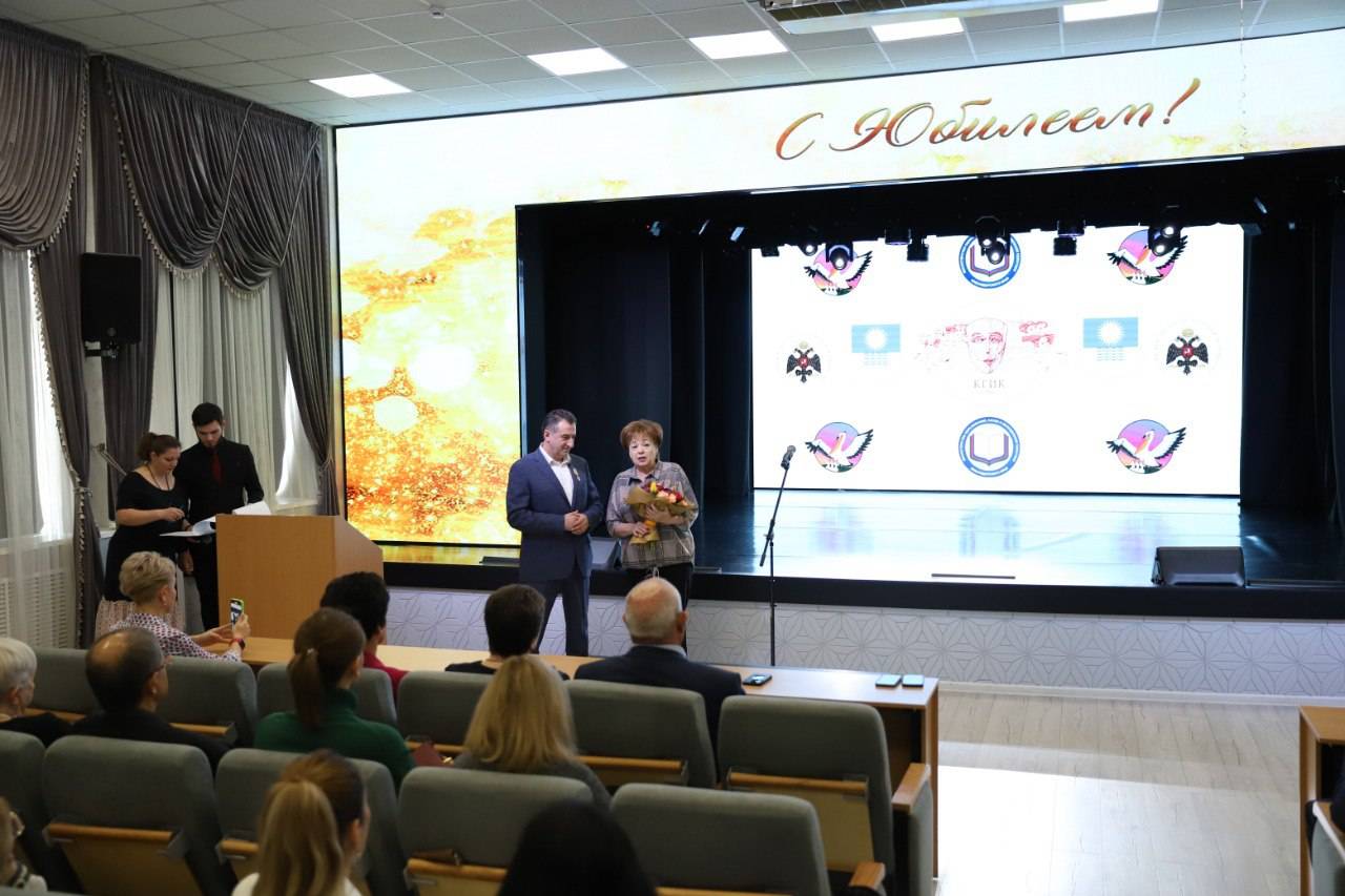 Соратники по Краснодарскому государственному институту культуры поздравили юбиляра не только устно, но и творчески, на сцене были и театральные номера и видео и даже песни.