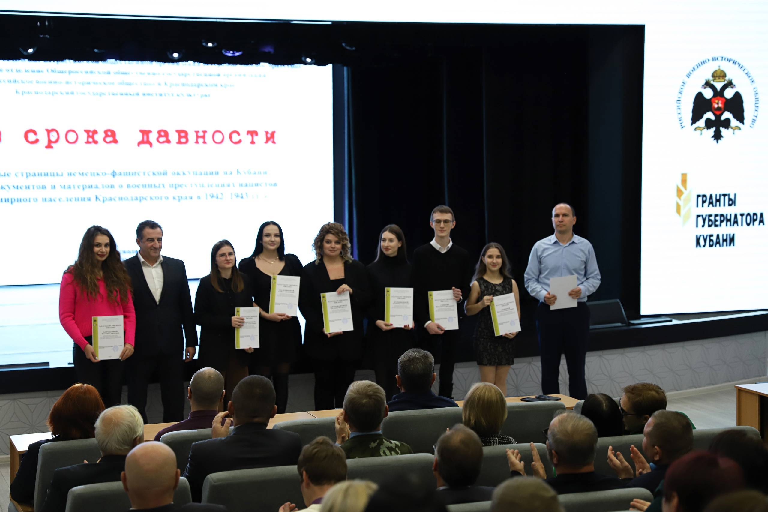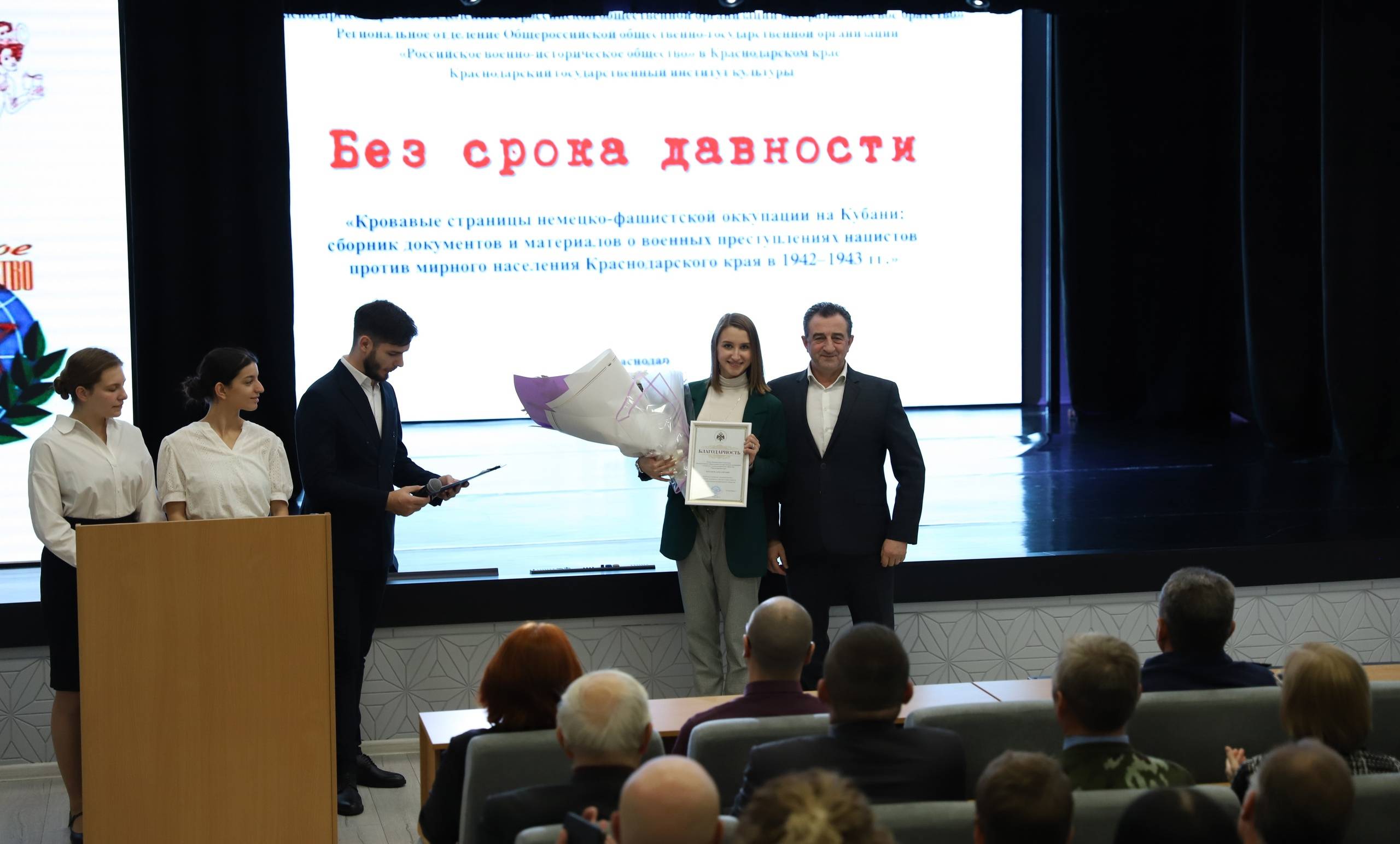 Краснодарское региональное отделение РВИО для работы над проектом «Без срока давности» привлекало студентов и работников КГИК. Они занимались поисковой и административной работой, посещали архивы и находили материалы о военных преступлениях немецко-фашистских оккупантов в Краснодарском крае. Перед началом презентации председатель КРО РВИО Сергей Зенгин наградил студентов и работников института культуры благодарственными письмами за их активную гражданскую позицию, а также за участие в проведении общественно-значимого проекта «Без срока давности: комплекс мероприятий к 80-летию освобождения города Краснодара».