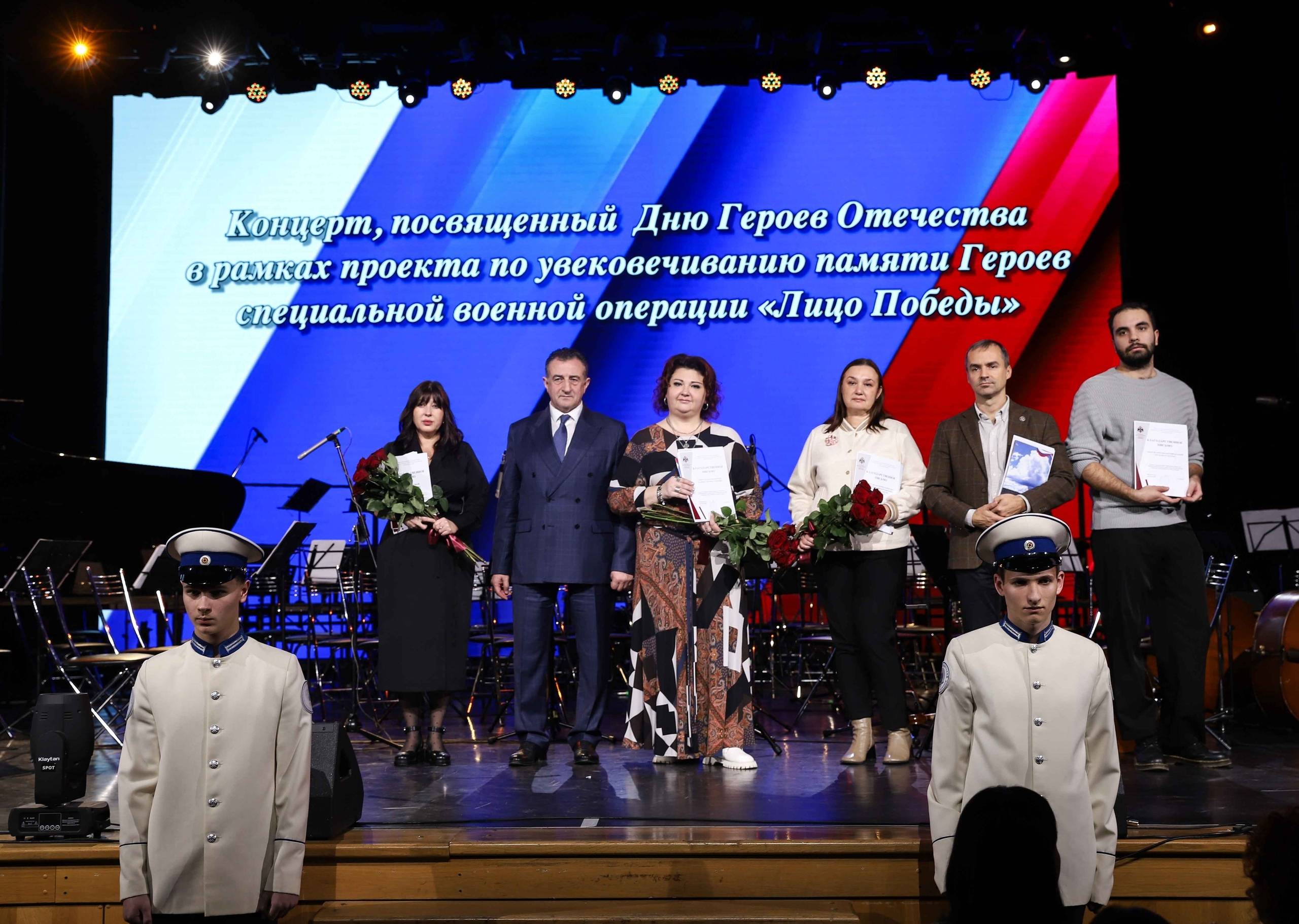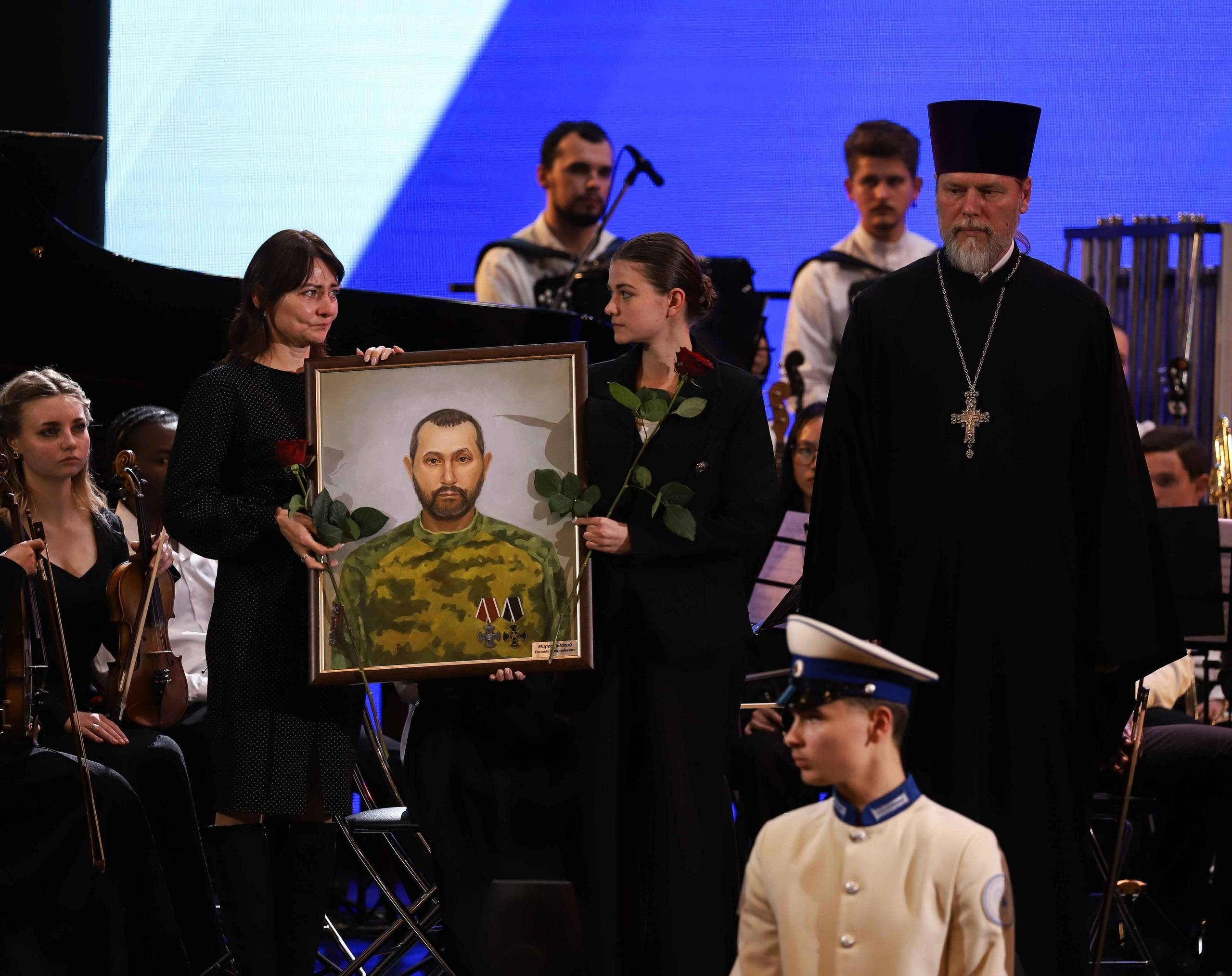 Церемония вручения портретов героев специальной военной операции завершилась Парадом Героев - через зрительный зал прошли члены семей погибших защитников с портретами сыновей, мужей и братьев, исполнивших свой воинский долг. Помимо портретов семьи героев также получили издания книги, подготовленной в рамках проекта «Лицо Победы».