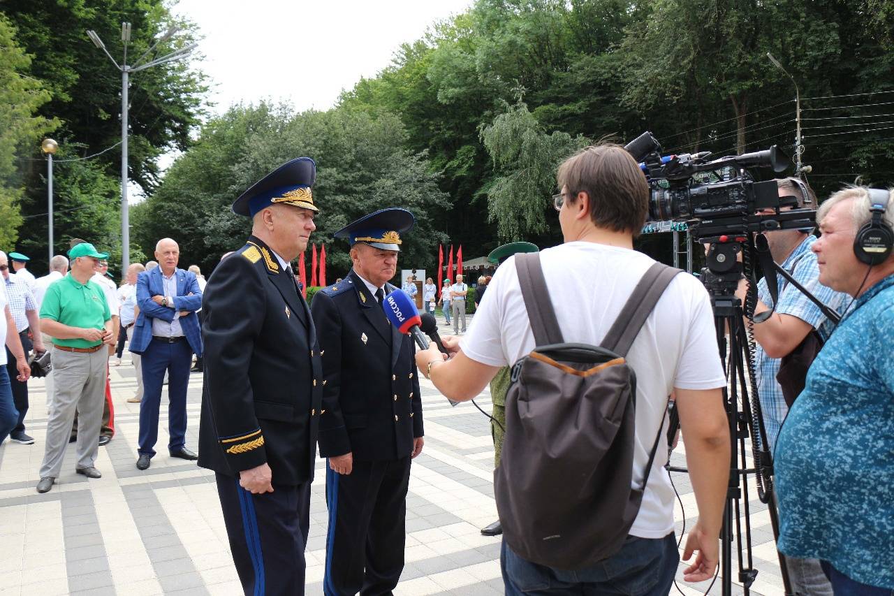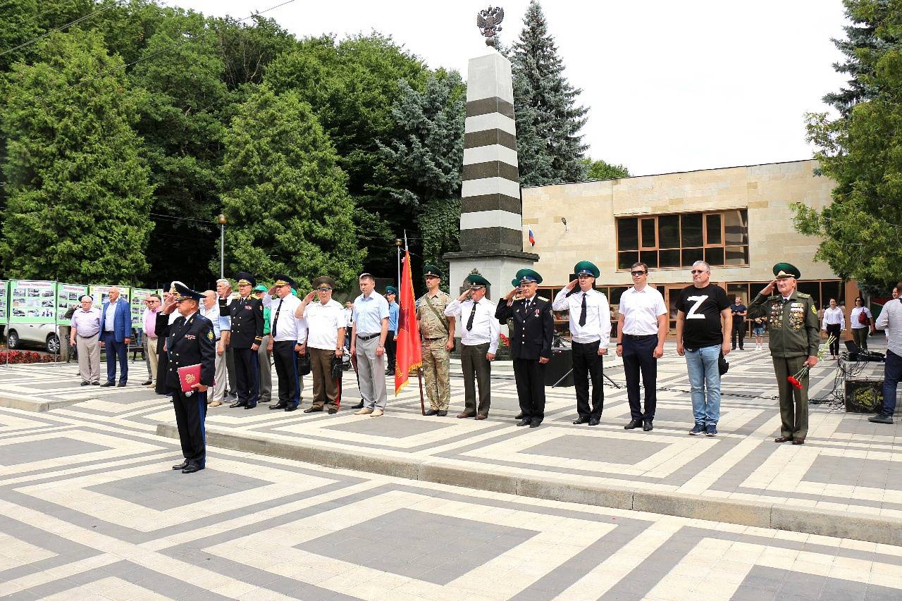 Участие в мероприятии приняли представители органов власти, общественных организаций, образовательных учреждений. Среди присутствующих были и члены Ставропольского регионального отделения Российского военно-исторического общества (РО РВИО СК) Лозовой В.И., депутат Думы Ставропольского края, подполковник пограничных войск ФСБ, кавалер Ордена Мужества, и Лесных А.А., полковник, ветеран пограничной службы.