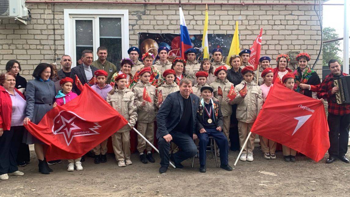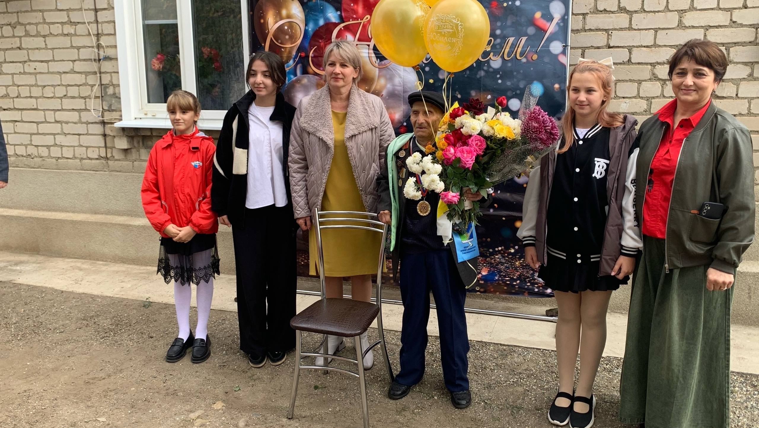 В этот замечательный день его пришли поздравить односельчане – представители администрации округа, общественных и производственных организаций, учреждений культуры, а также учащиеся МКОУ СОШ №5 с. Балахоновского во главе с директором школы Шульгиной И.В., членом Местного отделения Ставропольского регионального отделения Российского военно-исторического общества (РО РВИО СК) в Кочубеевском муниципальном округе (председатель – Котов С.Н.). Гости подарили юбиляру цветы и памятные подарки, поблагодарили за его службу и сделали фото на память.